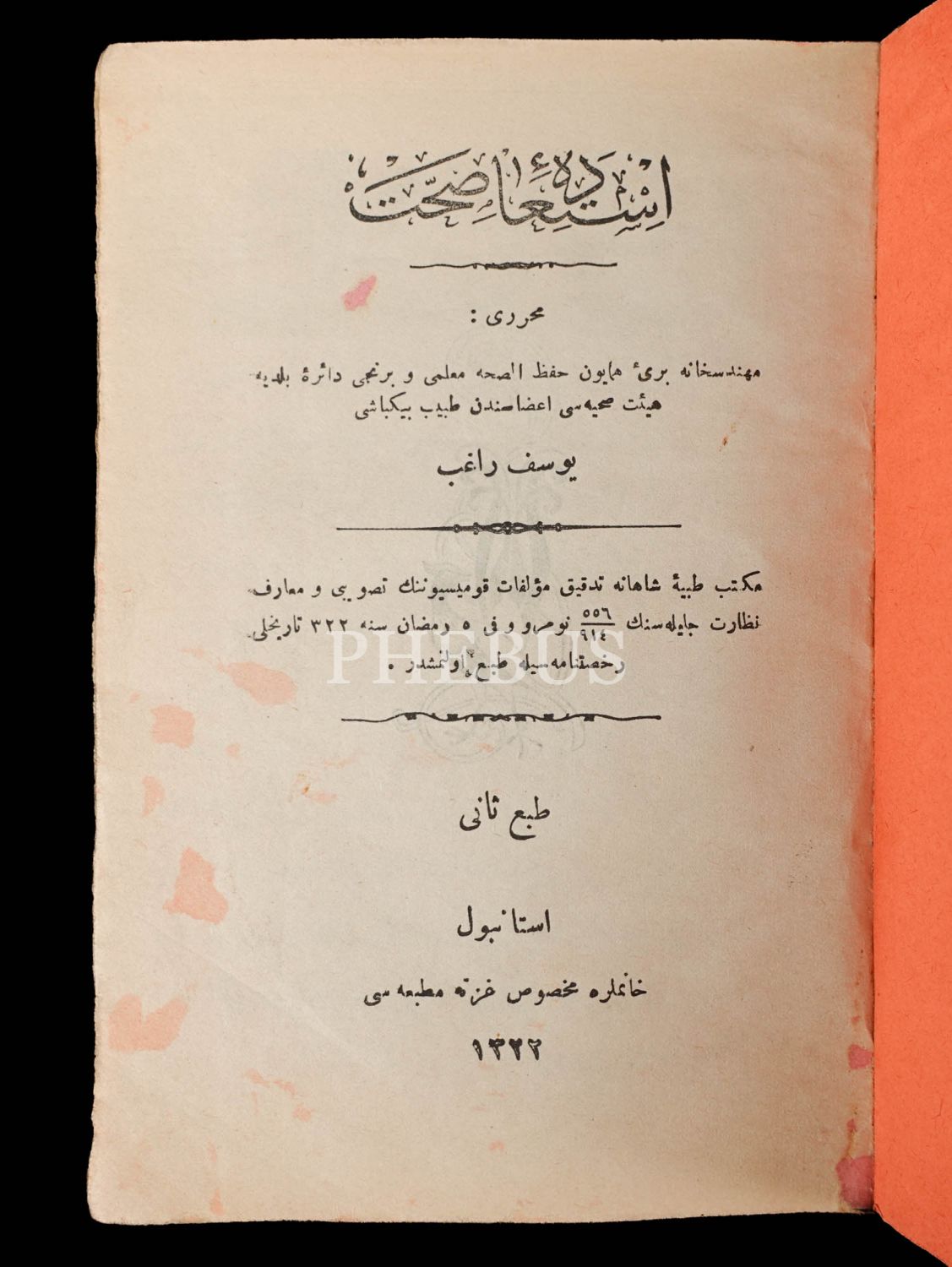 İSTİDADE-İ SIHHAT, Yusuf Ragıb, 1322, Hanımlara Mahsus Gazete Matbaası, 261 sayfa, 14x20 cm...