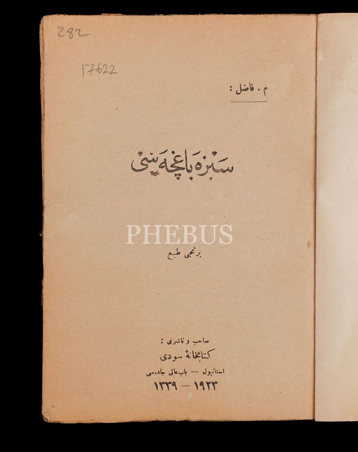 SEBZE BAHÇESİ, M. Fazıl, 1339, Kitabhane-i Sudi, 64 sayfa, 14x20 cm...