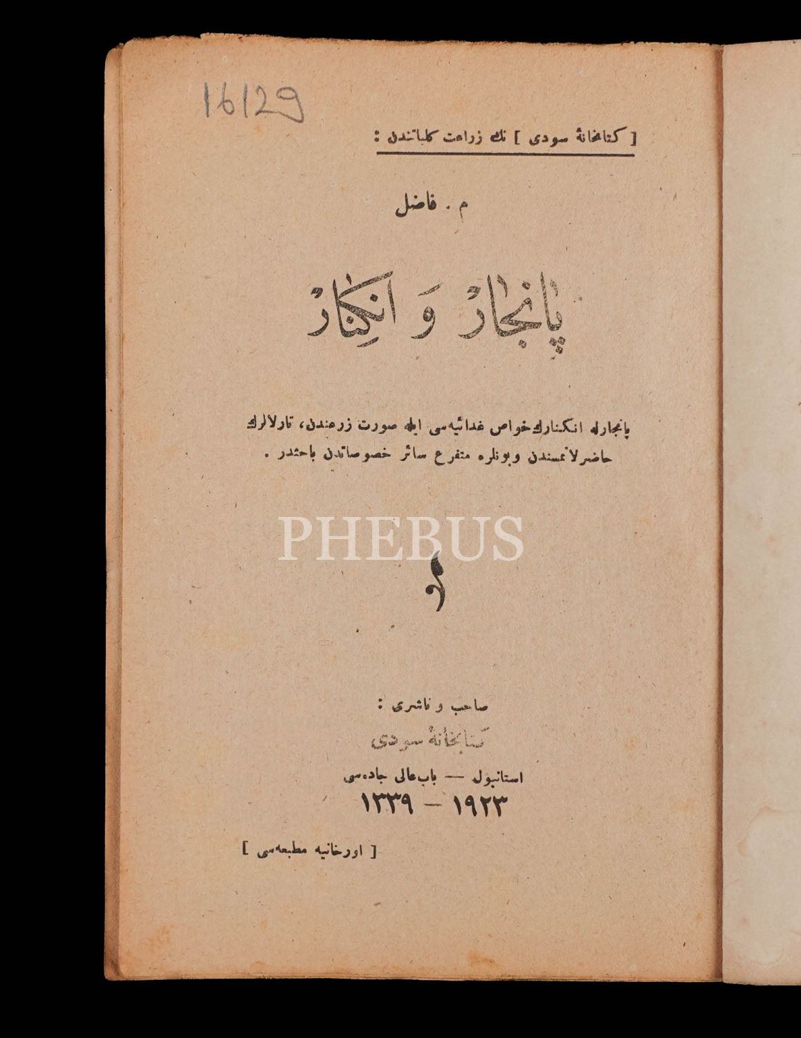 PANCAR VE ENGİNAR, M. Fazıl, 1339, Kitabhane-i Sudi, 64 sayfa, 14x20 cm...