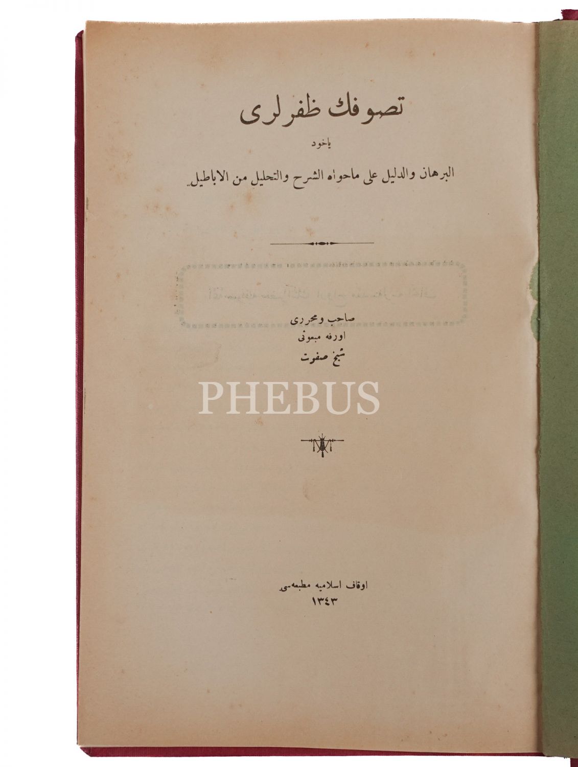 TASAVVUFUN ZAFERLERİ, Şeyh Safvet, 1343, Evkaf-ı İslamiye Matbaası, 158 sayfa, 17x26 cm...
