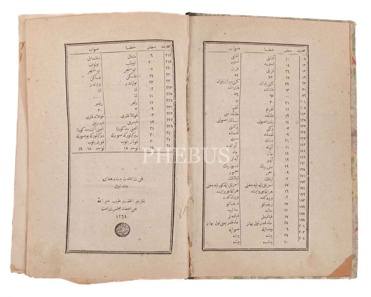 FENN-İ ZİRAATTEN BEYT-İ DİHKANİ (1. Cilt), (Çeviren: Müverrih ve Hekim Hayrullah).1264, Darü´t-Tıbaatü´l-âmire, 241 sayfa 17x24 cm...