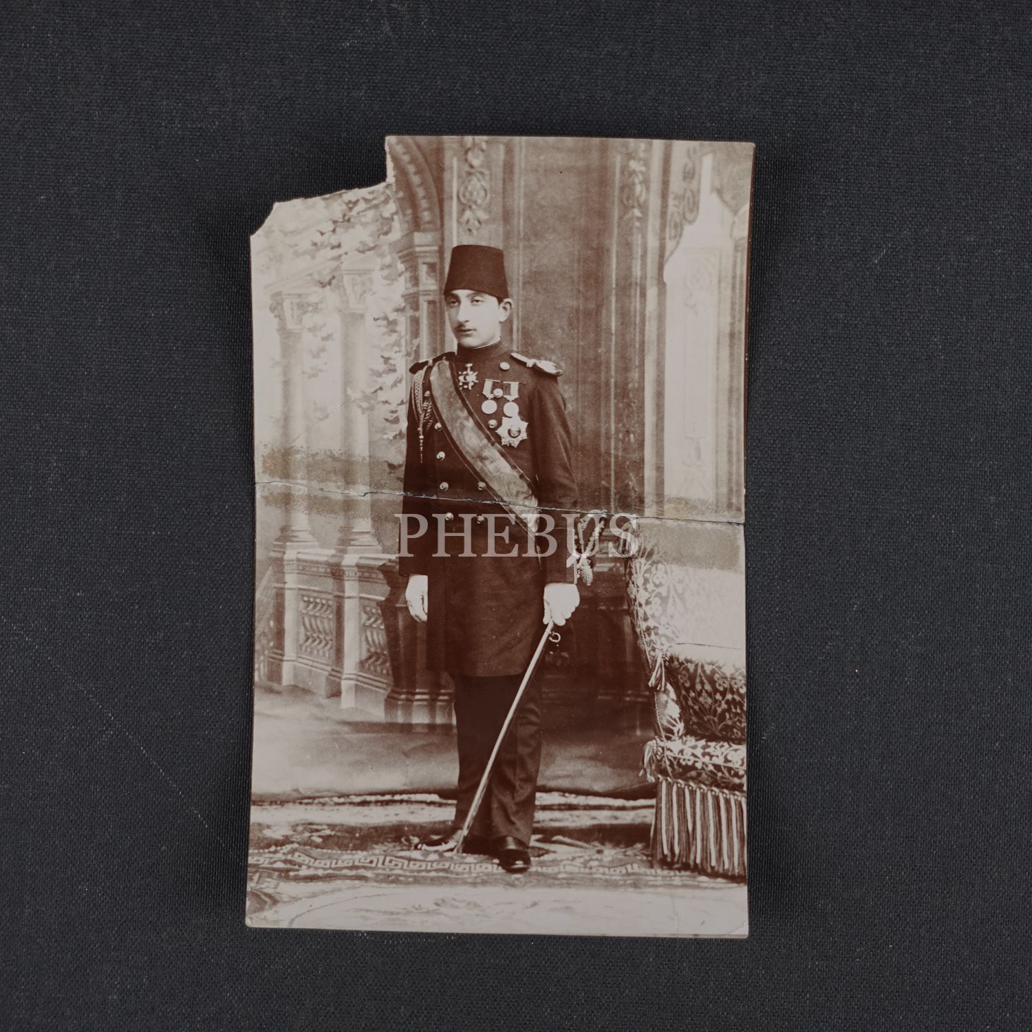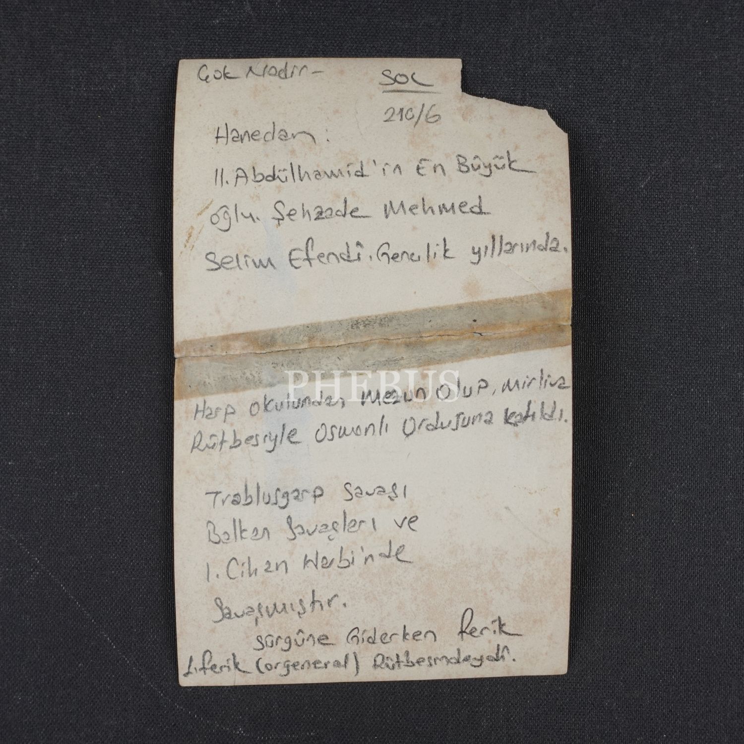 Sultan İkinci Abdülhamid´in en büyük oğlu Şehzade Mehmed Selim Efendi´nin, resmi üniforması ve tören kılıcıyla aldırdığı gençlik fotoğrafı, 10x16 cm...