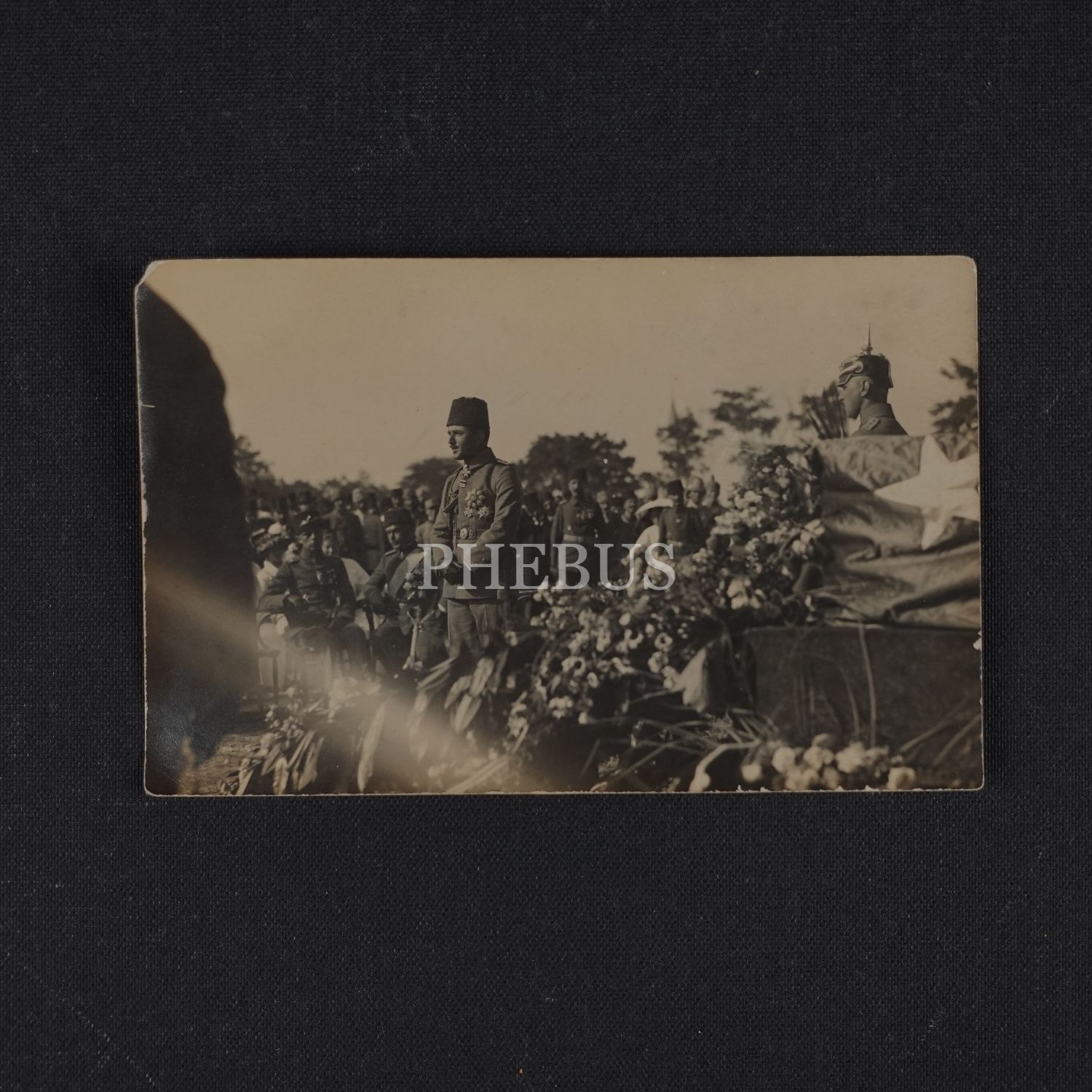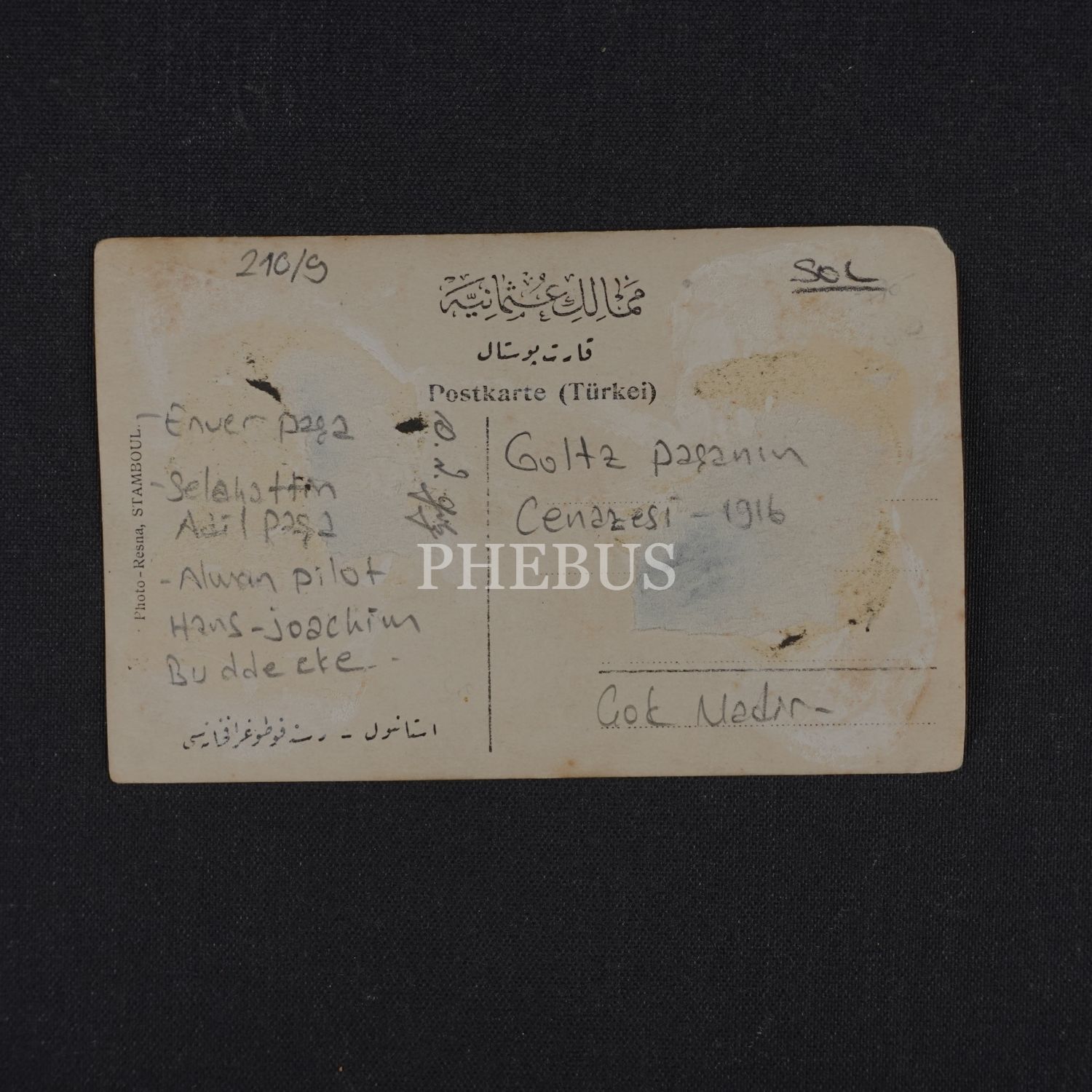 Enver Paşa, Türk dostu Goltz (Golç) Paşa´nın cenazesinde, komutanın Türk bayrağına sarılı tabutunun yanı başında, 1916, ed. Photo-Resna, Constantinople, 14x9 cm...