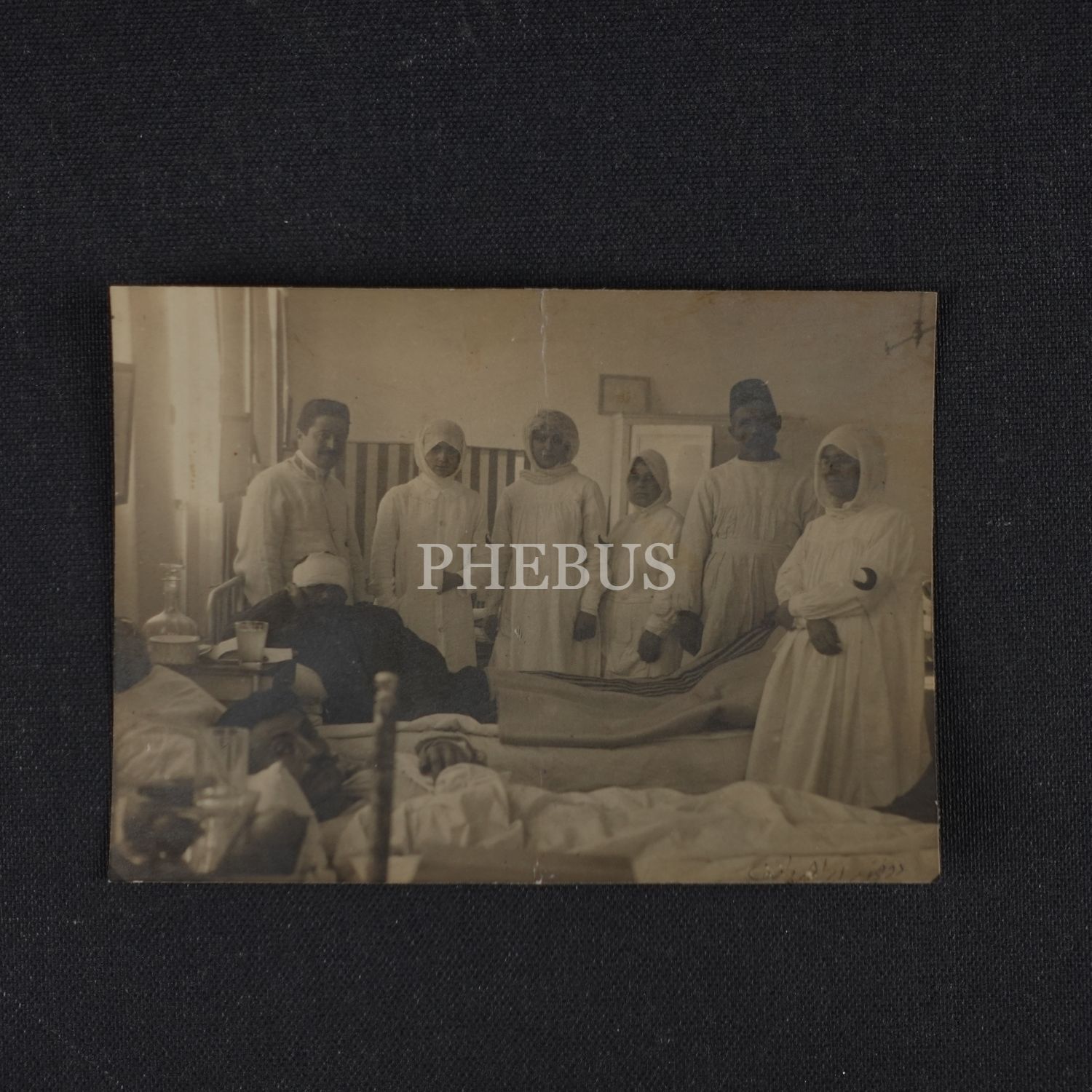 Fotoğrafın sağ alt köşesine el yazısı Osmanlıca "Doktor İbrahim Vasıf" notu düşülmüştür. İsmi geçen İbrahim Vasıf´ın, Türkiye´de röntgen tedavisinin öncü isimlerinden olan, Balkan Harbi döneminde birçok askerin tedavisiyle ilgilenen ve ne yazık ki tedbirsiz bir şekilde maruz kaldığı röntgen ışınlarının zararları sebebiyle genç yaşta hayata veda eden Doktor İbrahim Vasıf olma ihtimali yüksektir.