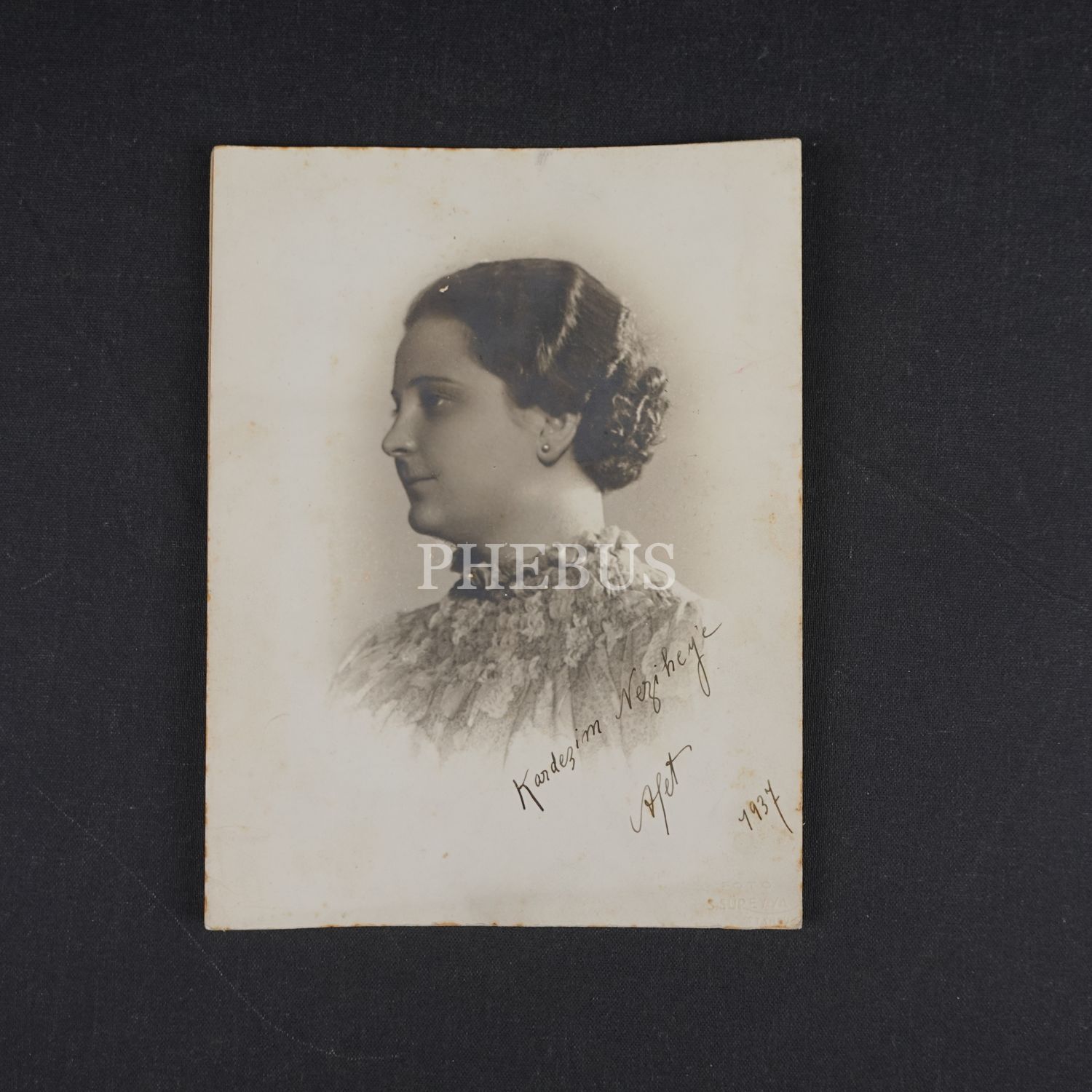 Afet İnan´ın, ithaflı ve imzalı portre fotoğrafı, 1937, "Foto S. Süreyya, İstanbul" soğuk damgalı, 18x23 cm...