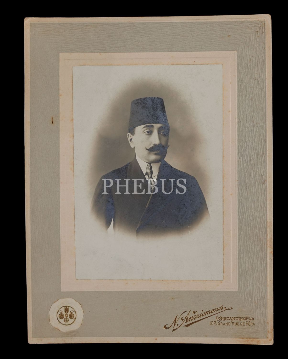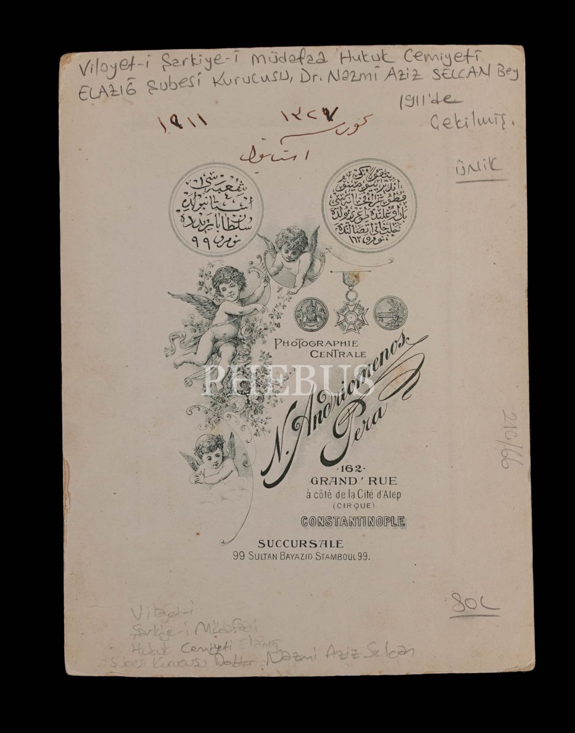 Erzurum Kongresi Elazığ Temsilcisi Doktor Nazmi Aziz (Selcen) Bey´in kabin fotoğrafı, 1911, N. (Nicolas) Andriomenos, Constantinople, fotoğraf 10x14 cm, paspartu 17x22 cm...