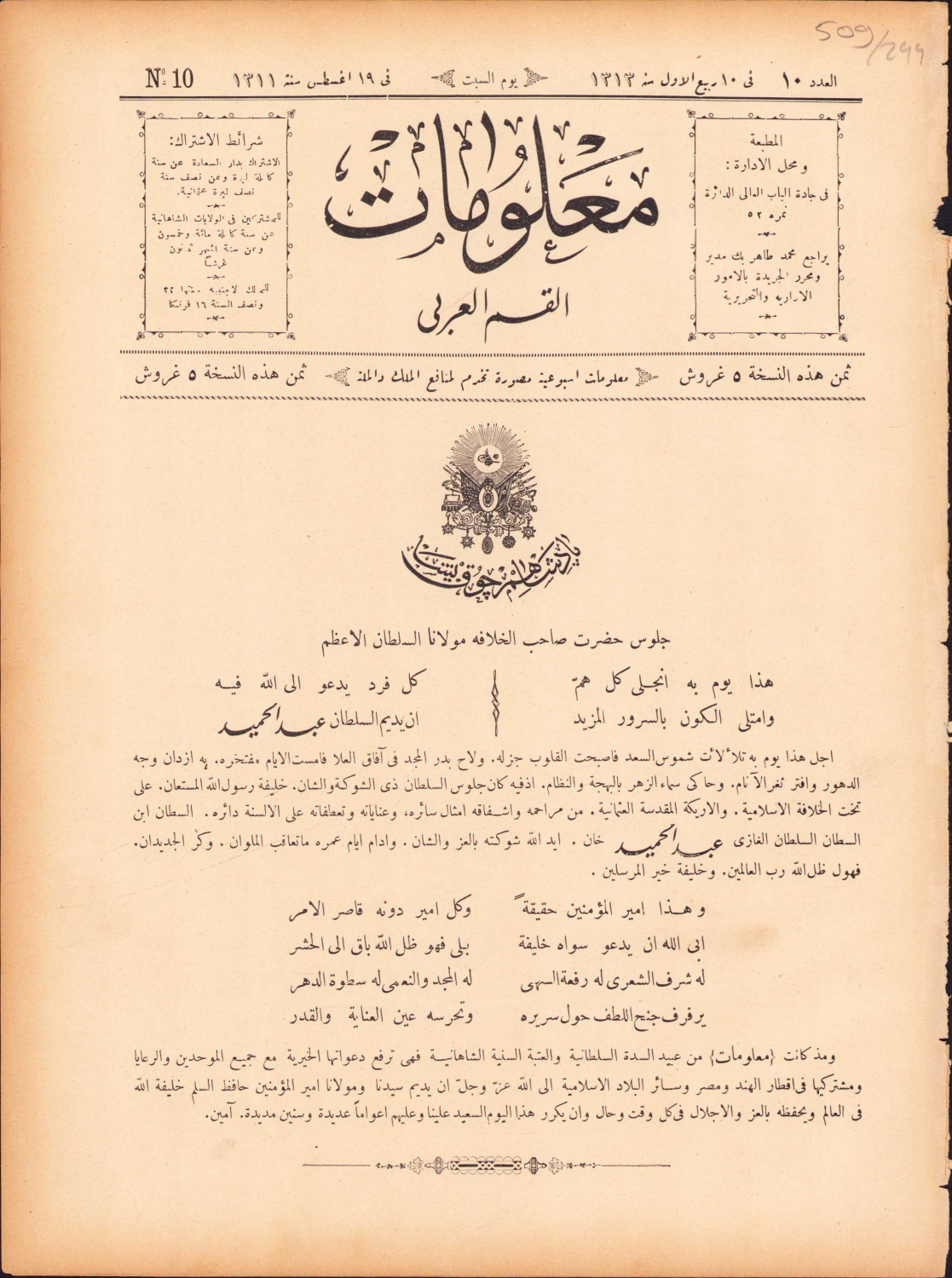 Osmanlıca Malumat gazetesi - el kısmı arabi, "Padişahım Çok yaşa", 4 sayfa, 24x33 cm