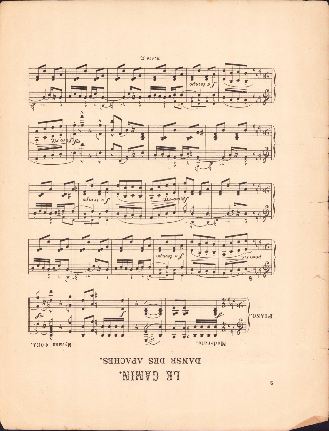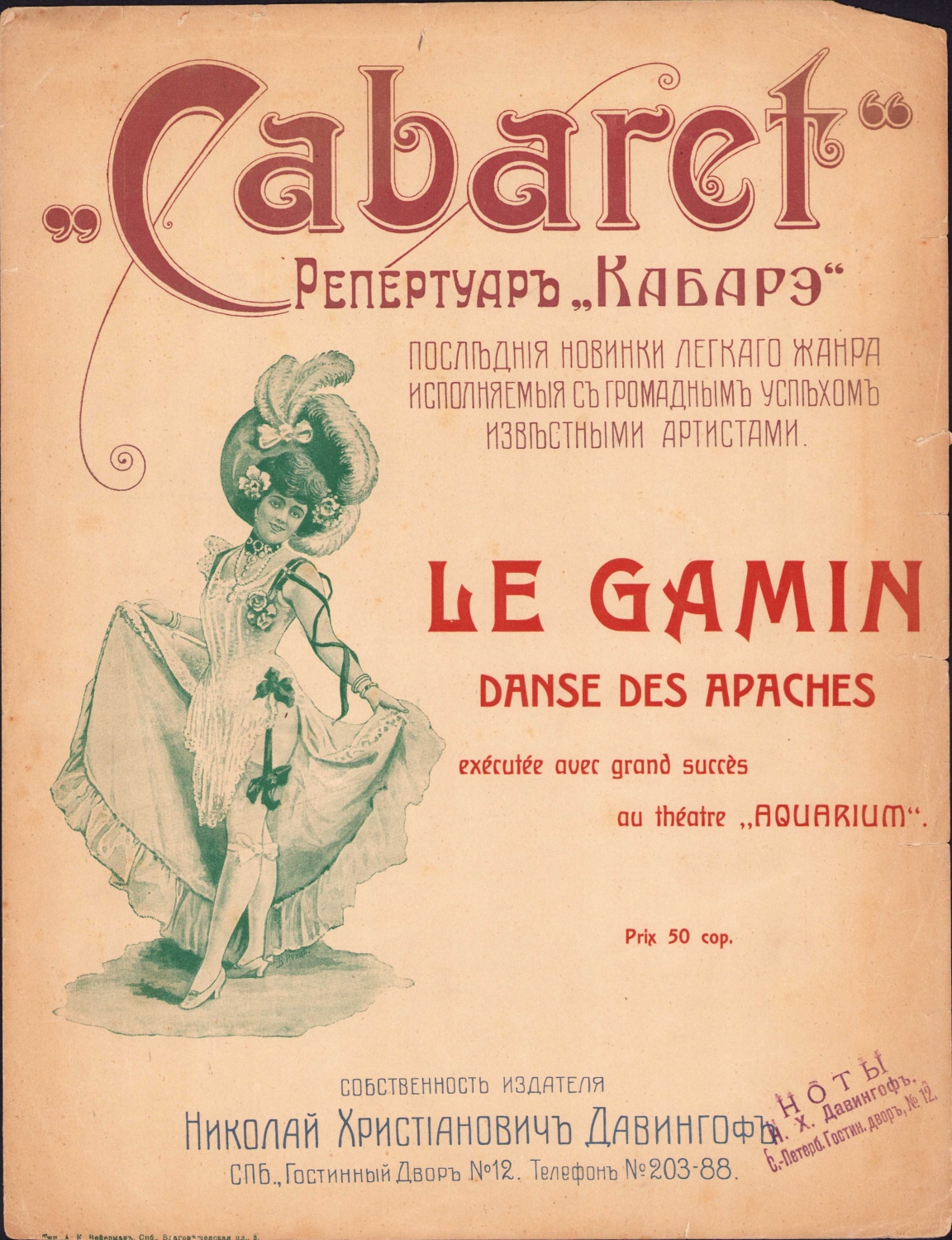 Cabaret, Rusça nota, Le Gamin, 2 sayfa, kenarı kopuk, 26x34 cm