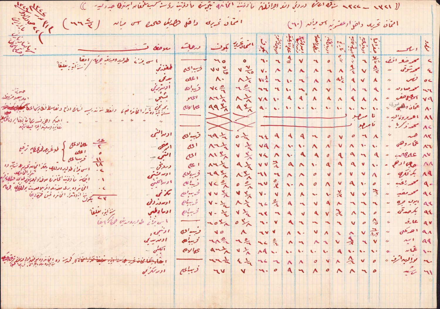 Osmanlıca 4. den olarak 1322 senesinde icara kılınan mezuniyet tahrir imtihanına mahsus şifre, 40x28 cm