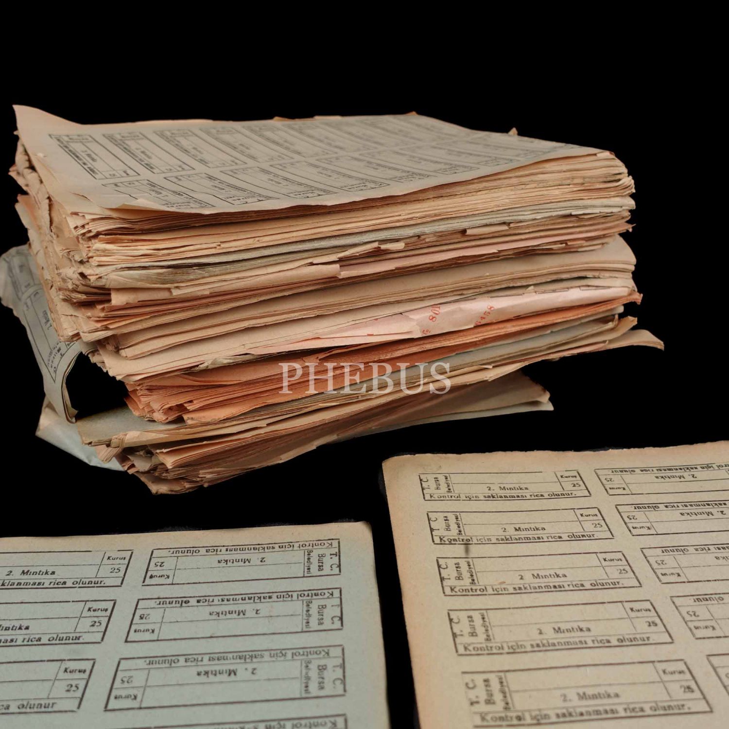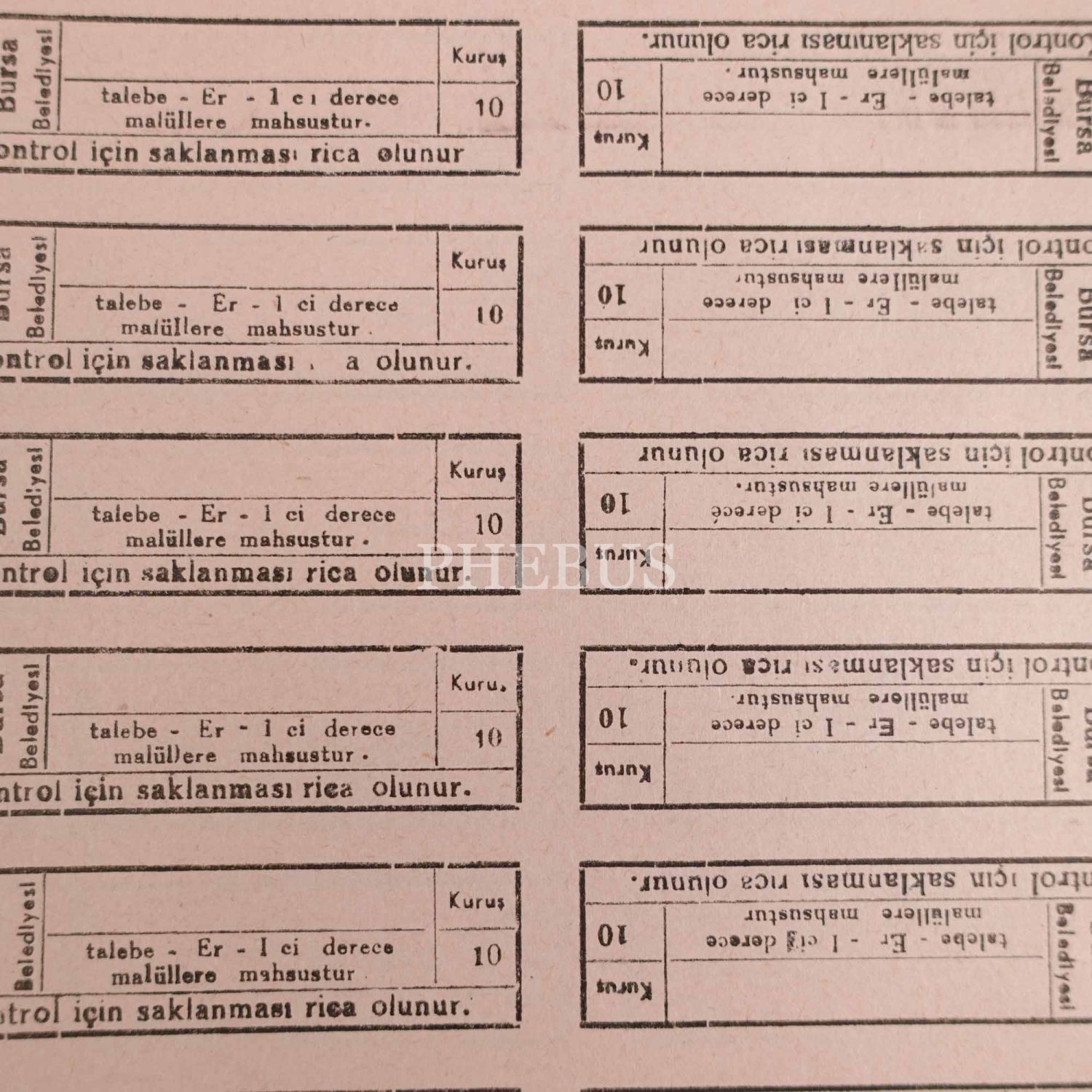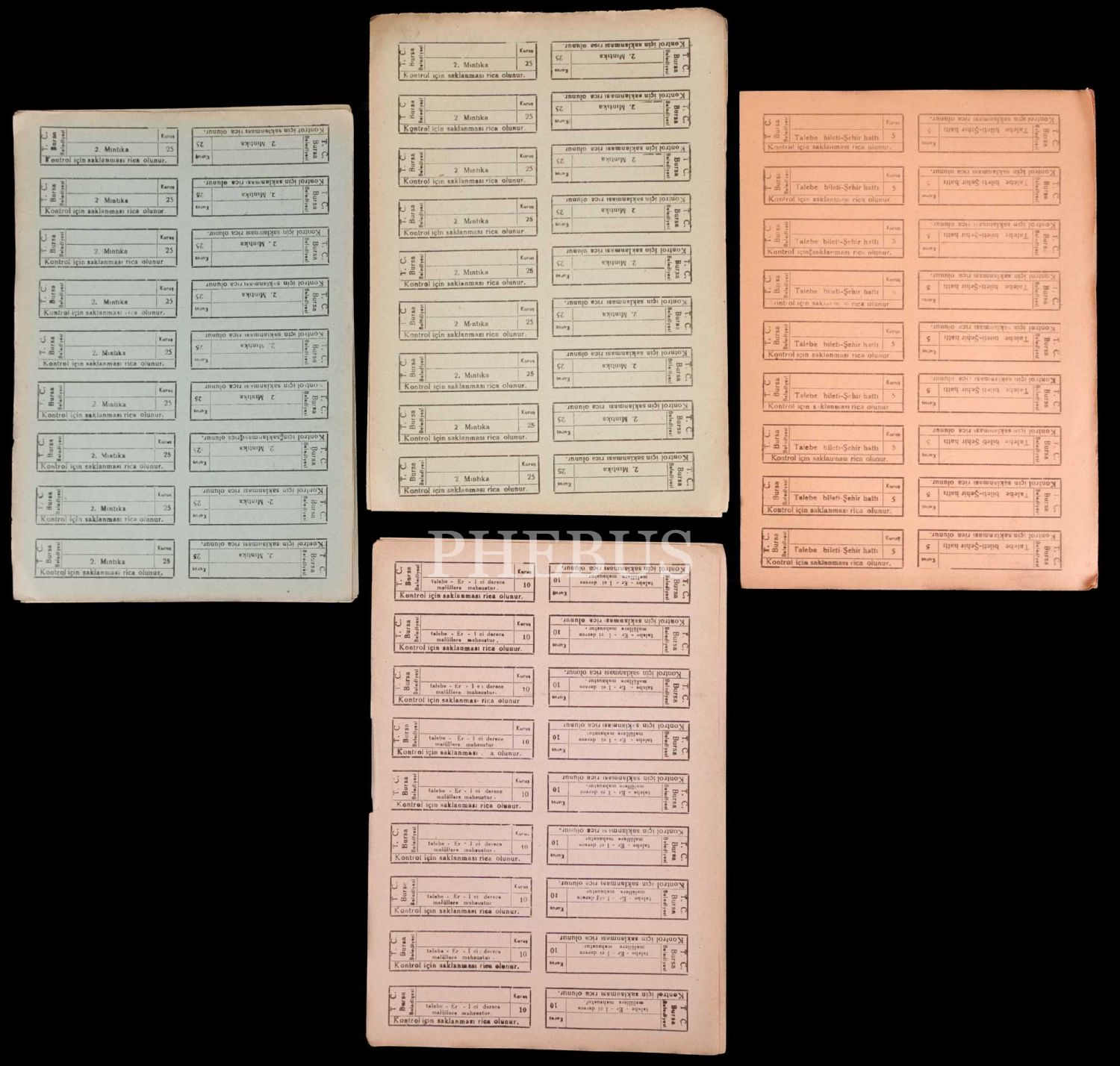 Bursa Belediyesi otobüs bileti koçanları, 17x24 cm boyutunda çok sayıda nüsha...