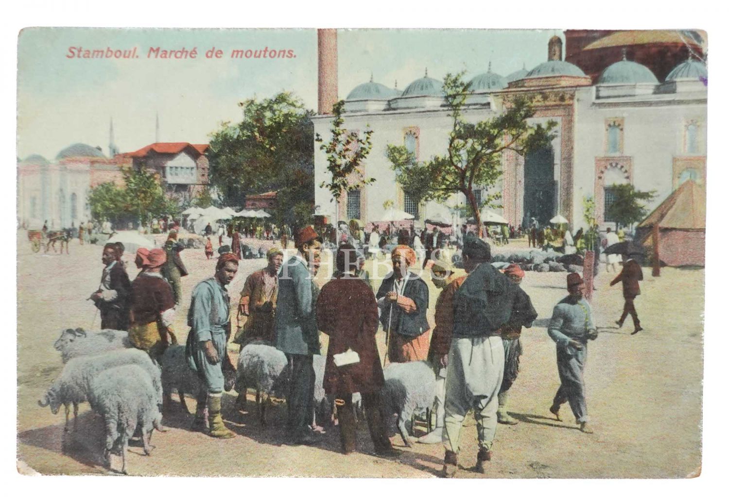Beyazıt Meydanı´nda koyun pazarı, "Stamboul. Marche de moutons", ed. Max Fruchtermann, 14x9 cm...