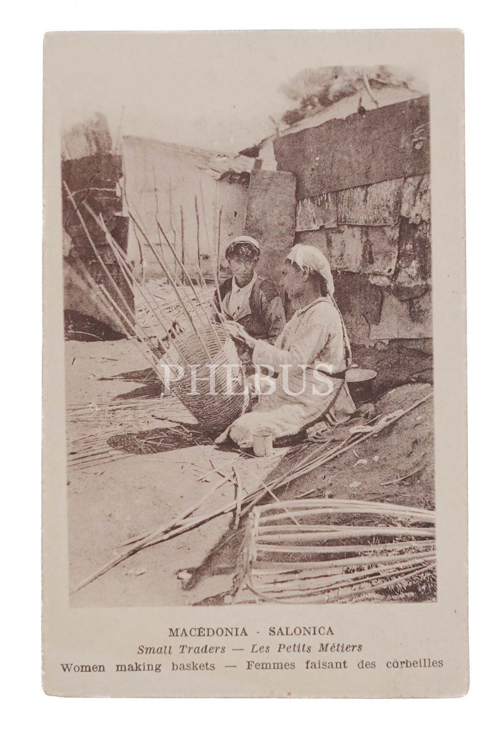 Sepet yapan kadınlar, "Macedonia - Salonica, Femmes faisant des corbeilles", 14x9 cm...