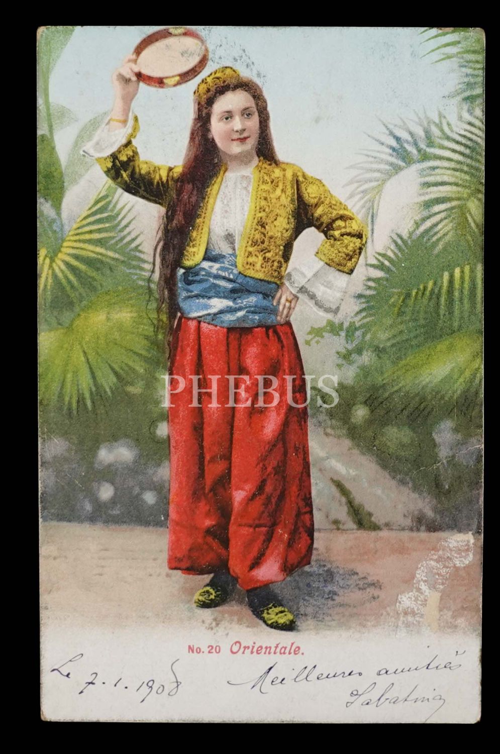Yöresel kıyafetli kadın, "Orientale", 14x9 cm...