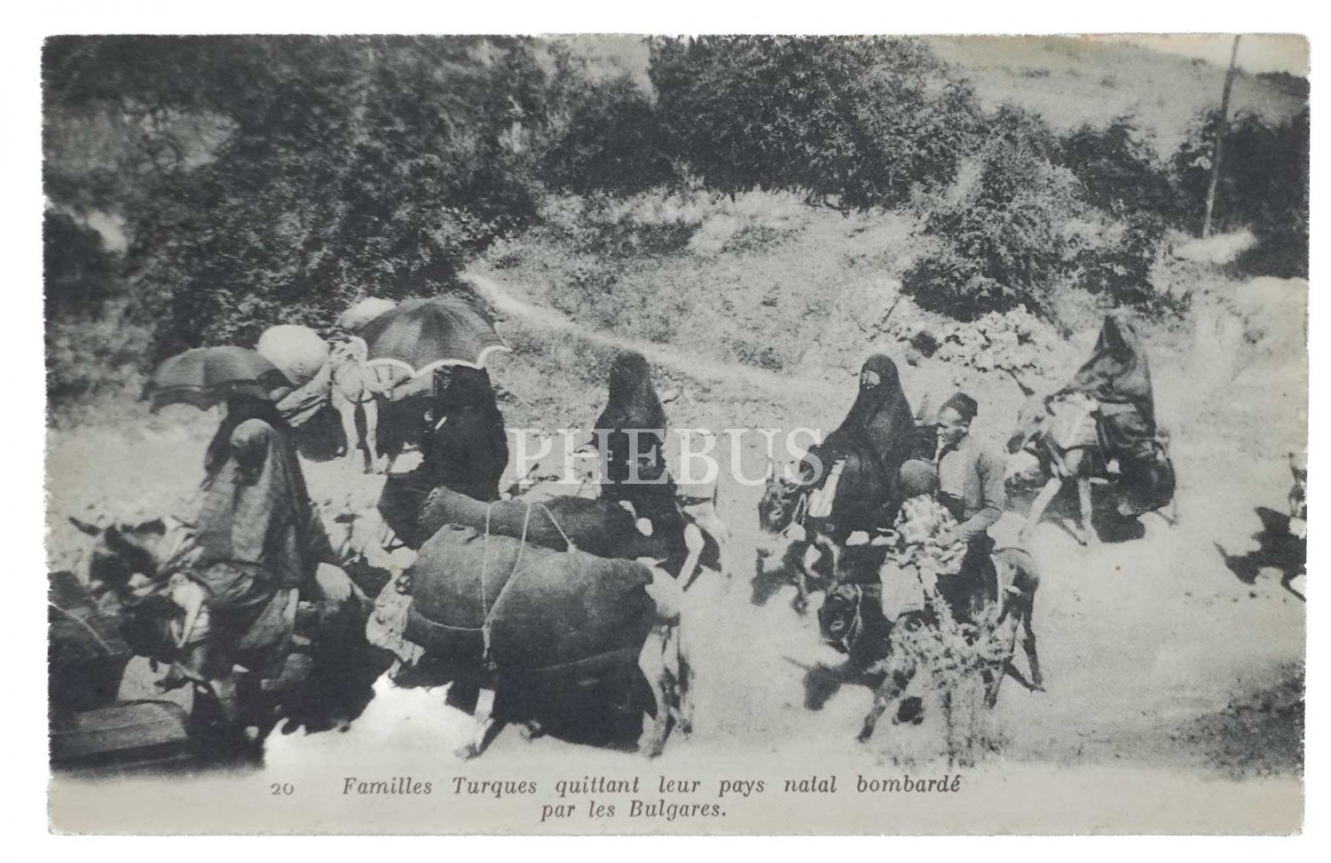 Bulgaristan´dan göç eden Türk muhacirler, "Familles Turques quillant leur pays natal bombarde par les Bulgares", 14x9 cm...
