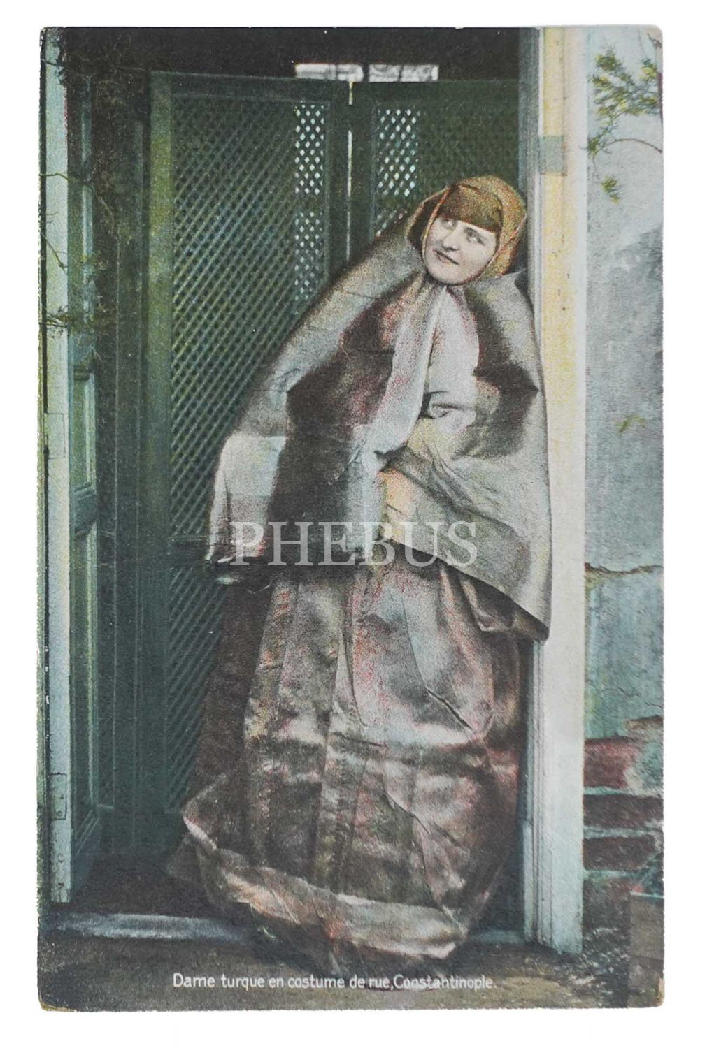 Türk kadını, "Dame turque en costume de rue - Constantinople", 14x9 cm...