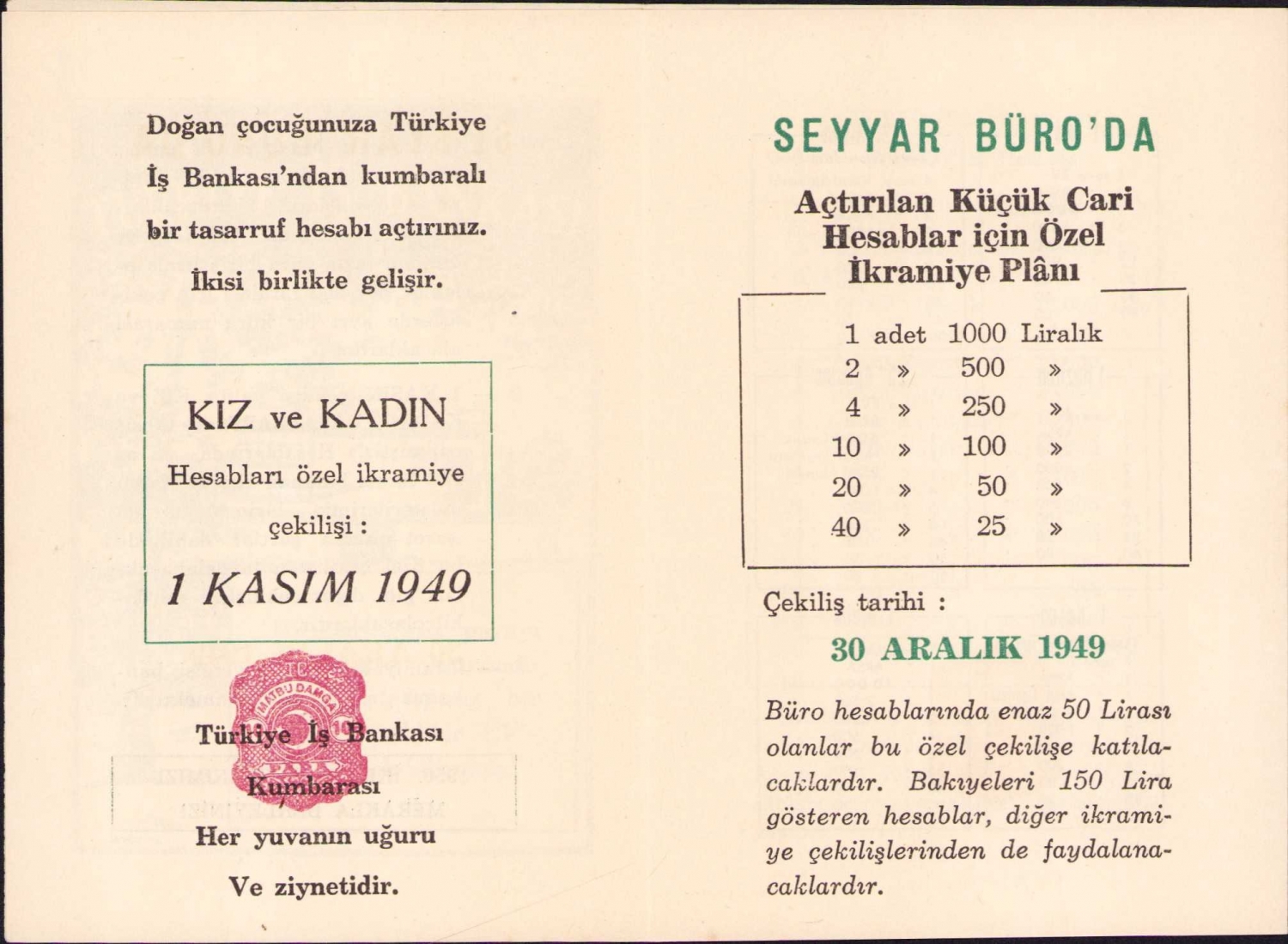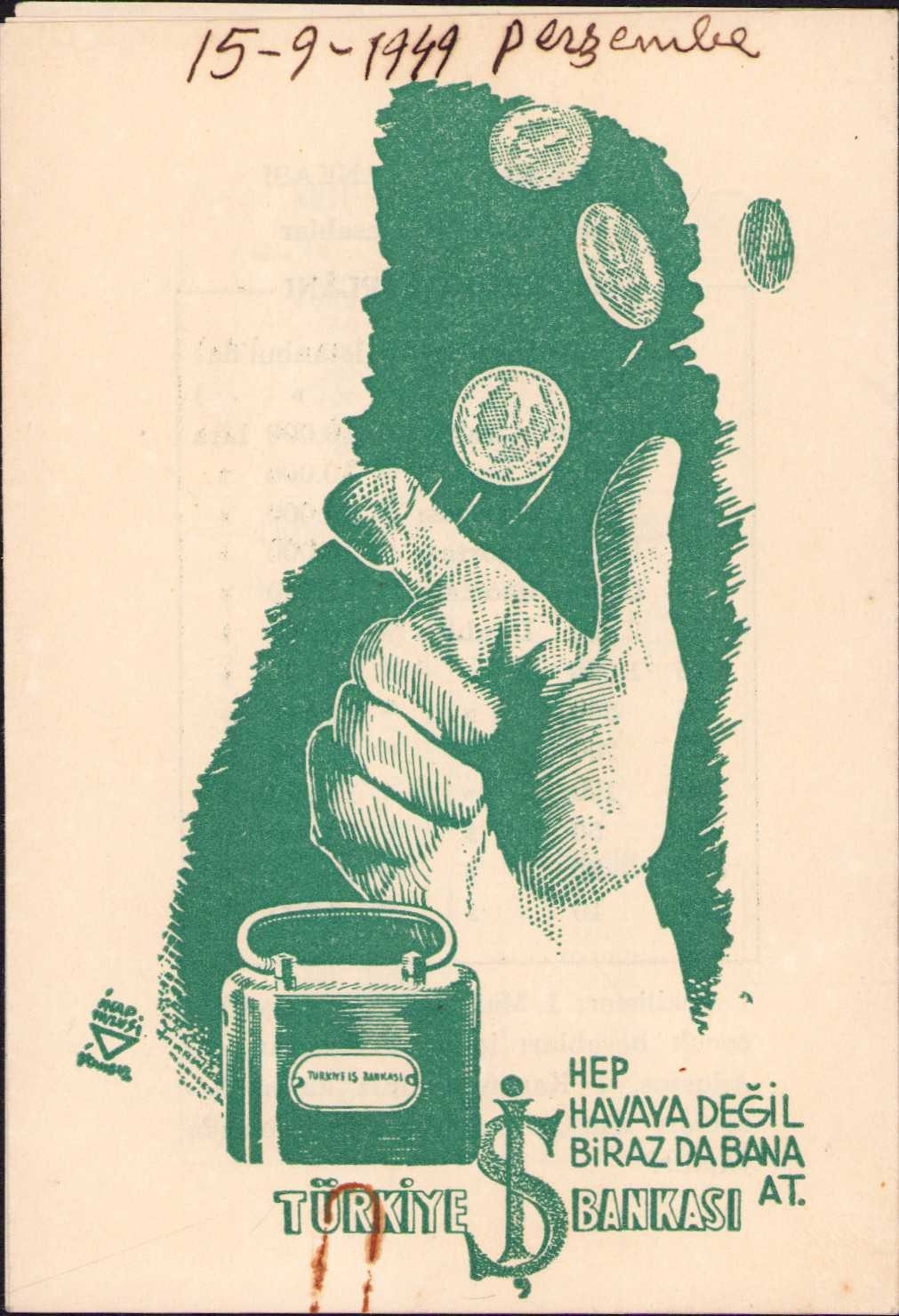 Türkiye İş Bankası Broşür, İhap Hulusi çizim, 7x11 cm
