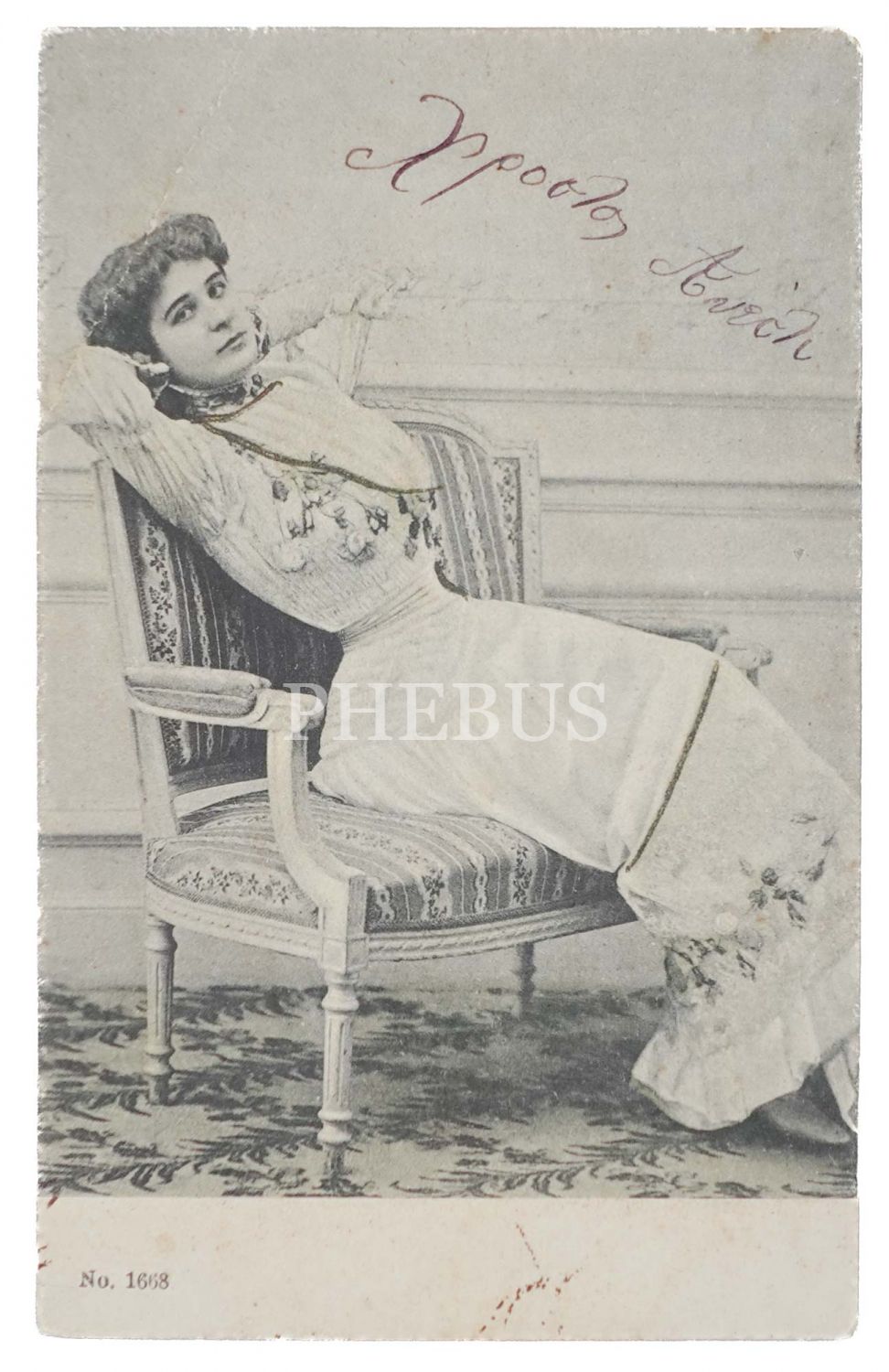 Koltukta poz veren kadın, 14x9 cm...