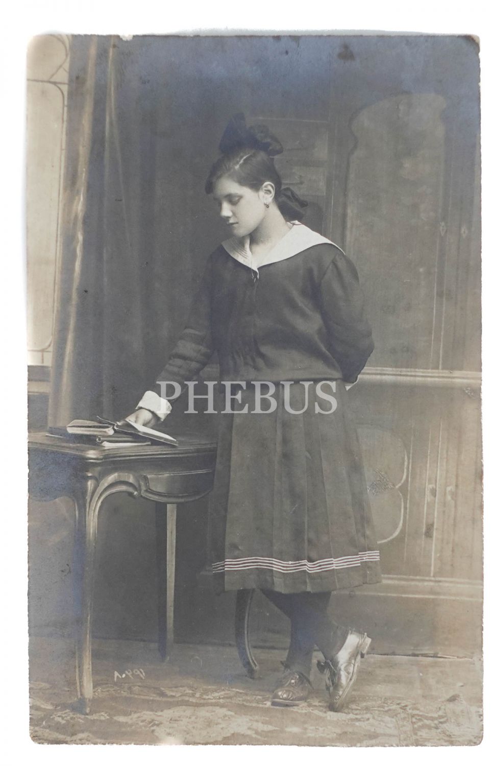 Bir kız öğrencinin stüdyo hatıra fotoğrafı, Resne Fotoğrafhanesi, 14x9 cm...