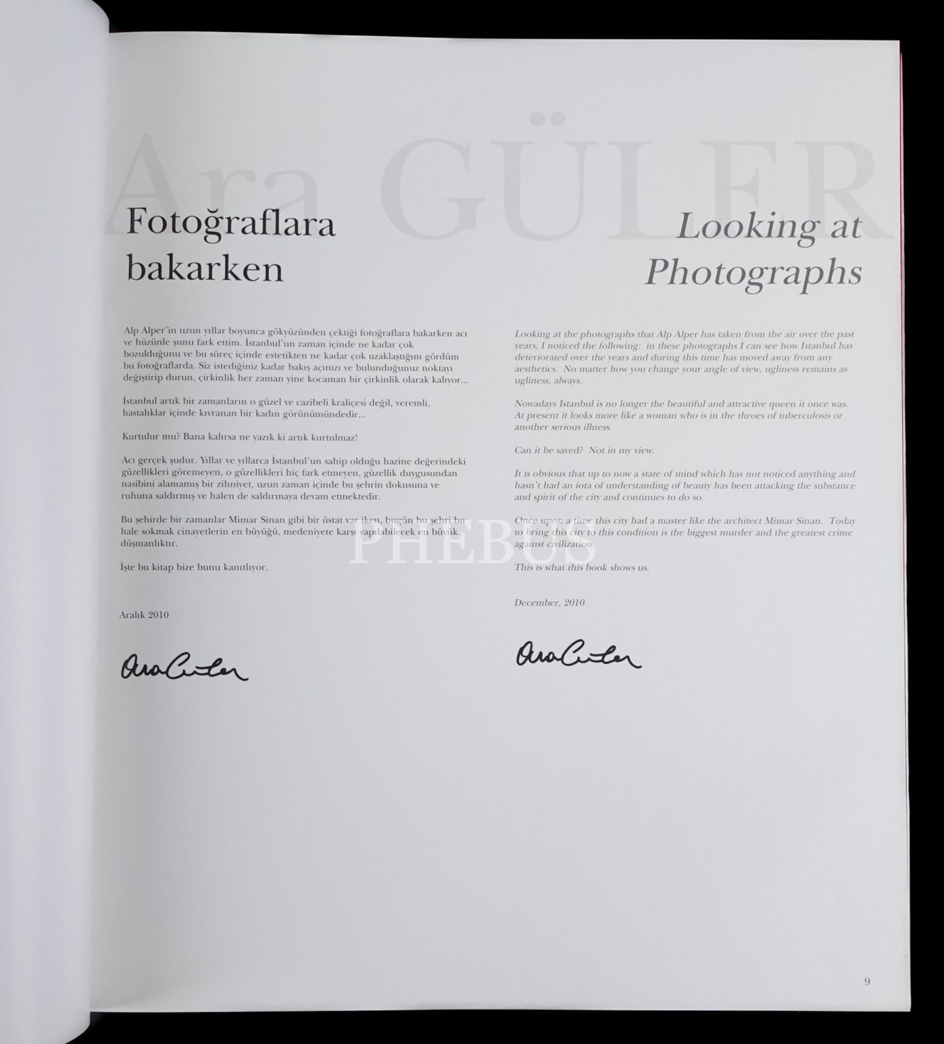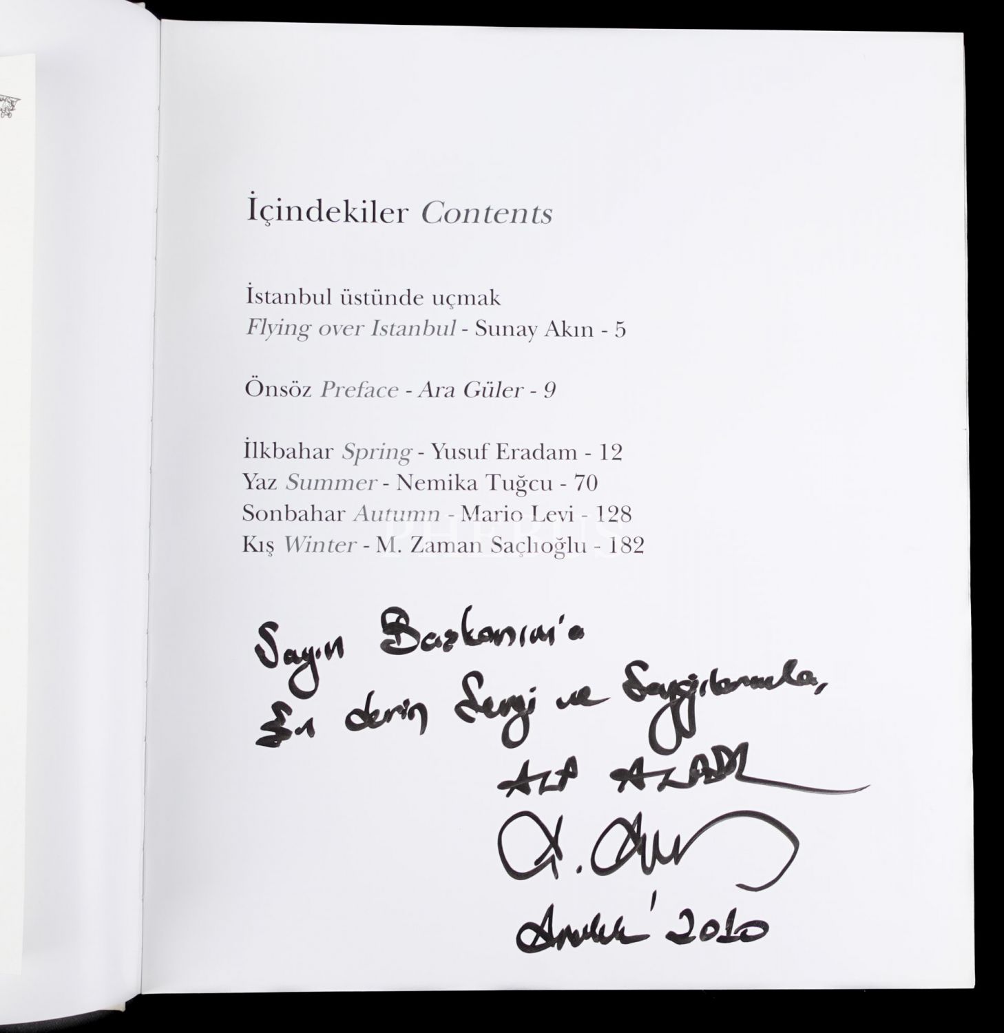 "Sayın Başkanım´a (Kadir Topbaş) en derin sevgi ve saygılarımla..." ithafıyla imzalanmıştır.