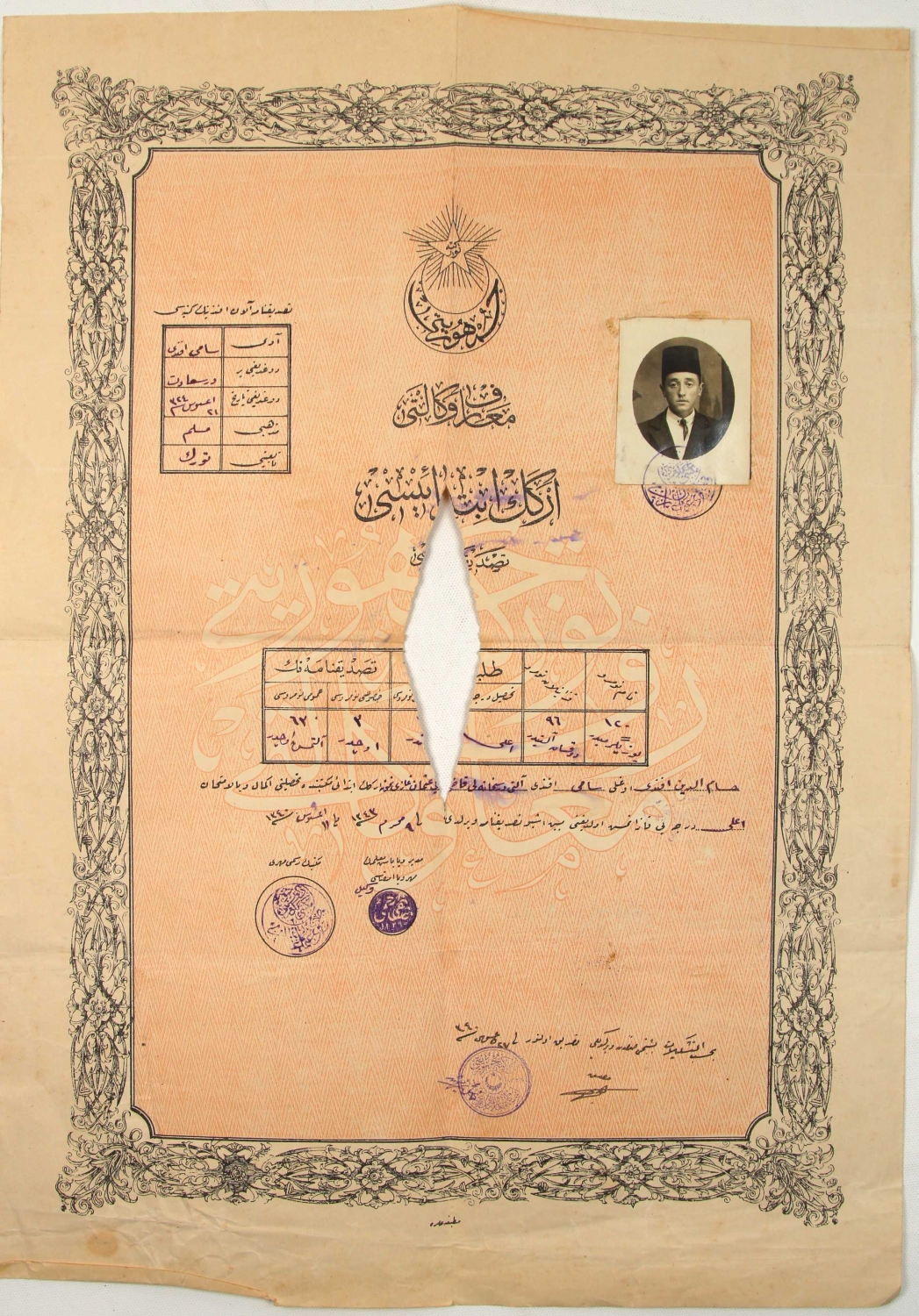 Osmanlıca Maarif Vekaleti Erkek İbtidaisi tasdikname, 1340, ortadan kopuk, haliyle, 30x45 cm
