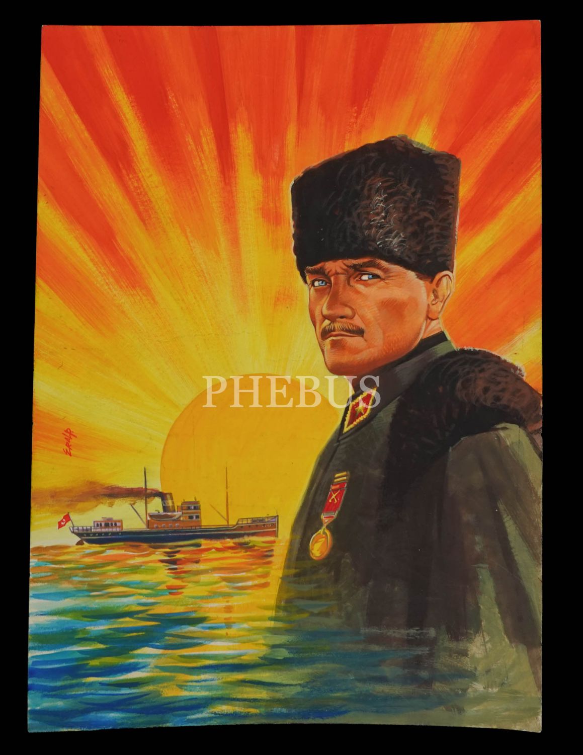 Eralp Noyan´dan ıslak imzalı, Atatürk ve Bandırma Vapuru konulu orijinal çizim Hürriyet Çocuk kapağı, 25x35 cm...