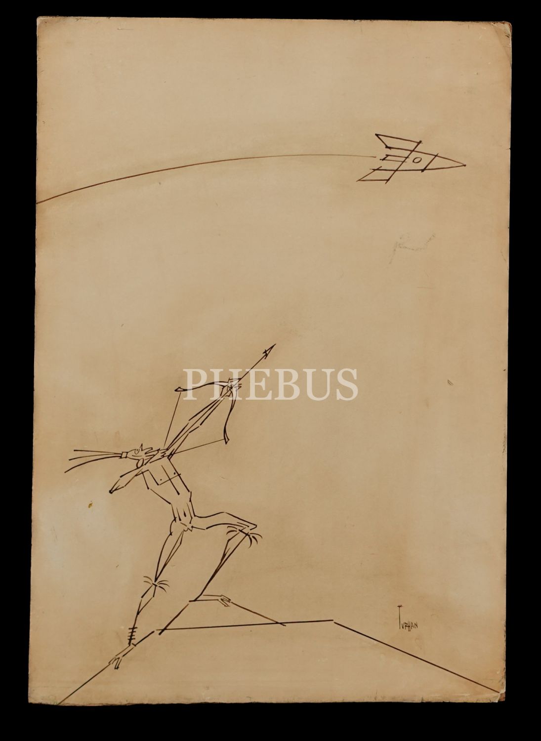 Turhan Selçuk´tan ıslak imzalı, orijinal çizim figüratif kompozisyon, preskarton üzerine çini mürekkebi, 34x50 cm...