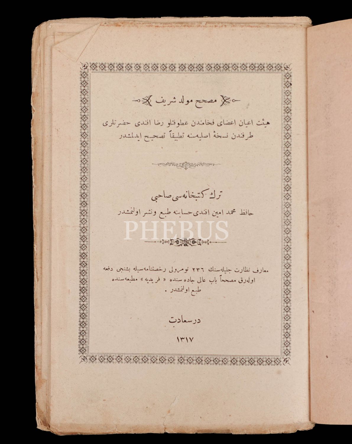 MUSAHHAH MEVLİD-İ ŞERİF, (tashih eden: Rıza Efendi), 1317, 27 sayfa...