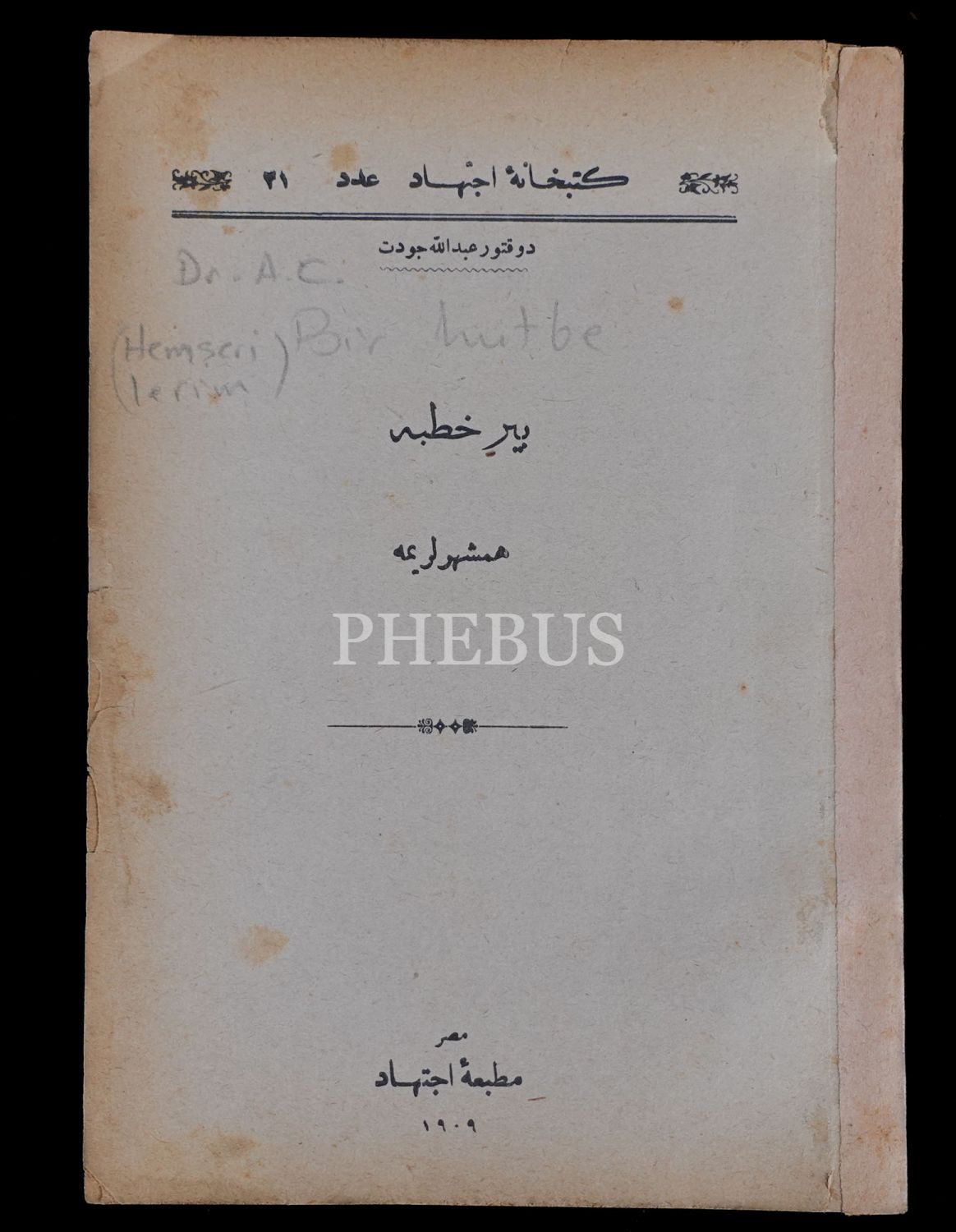 BİR HUTBE, Abdullah Cevdet, 1909, İçtihad Matbaası (Mısır), 16 sayfa...