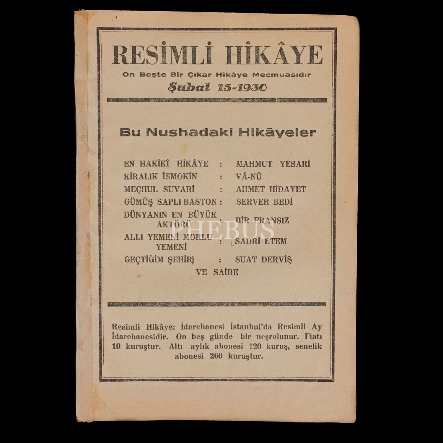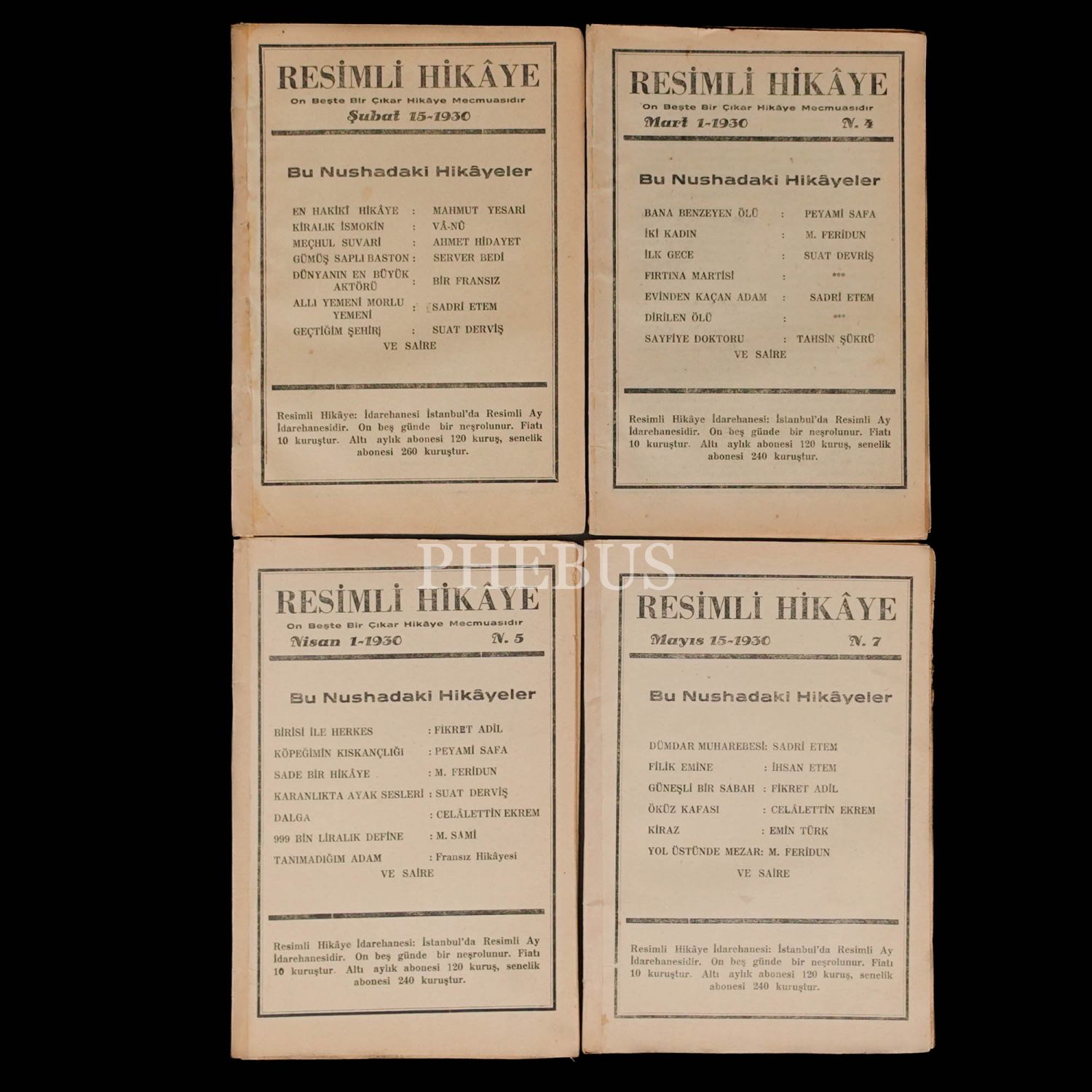 RESİMLİ HİKAYE mecmuasının 1930 senesi Şubat, Mart, Nisan ve Mayıs aylarında yayımlanan 4 sayısı...