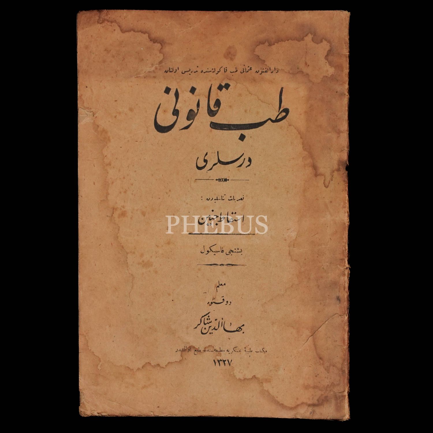 TIP KANUNU DERSLERİ, Bahaddin Şakir, 1327,Darülfünun Osmanlı Tıp Fakültesi Neşriyatı, 95 sayfa...