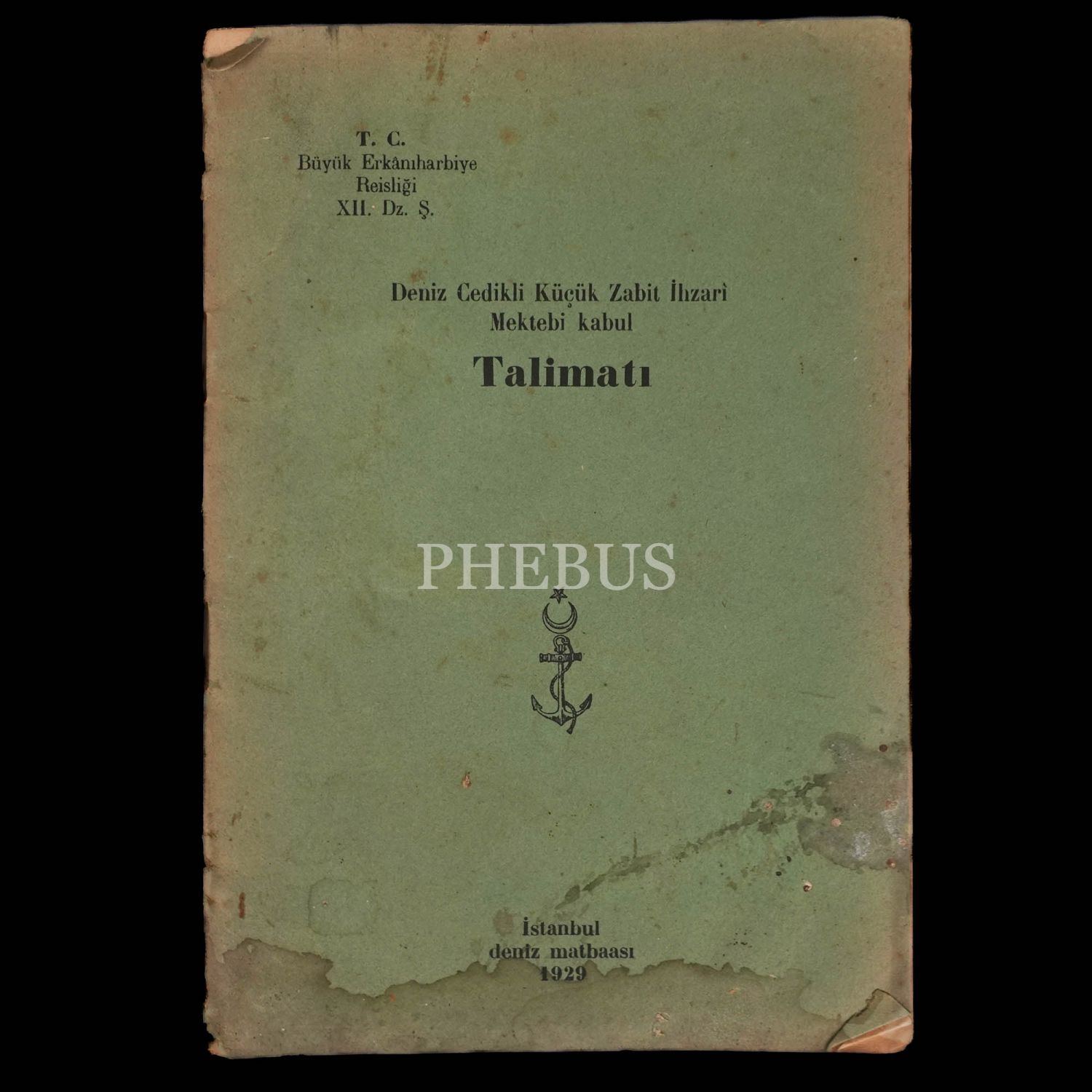 DENİZ GEDİKLİ KÜÇÜK ZABİT İHZARİ MEKTEBİ KABUL TALİMATI, 1929, Deniz Matbaası, 15 sayfa...