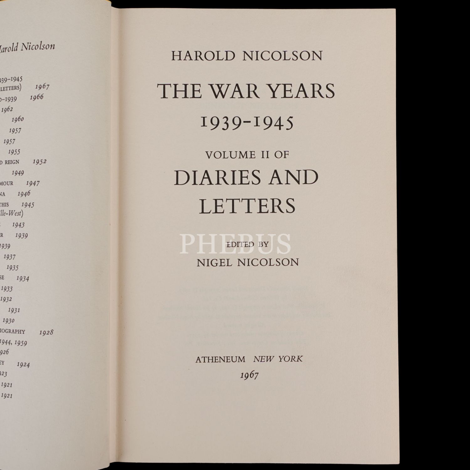 THE WAR YEARS 1939-1945 (Volume II: Diaries And Letters), Nigel Nicolson, 1967, Atheneum (New York), 511 sayfa...