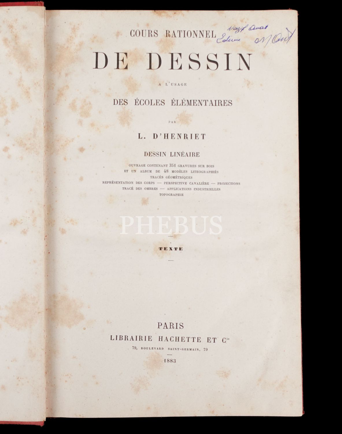 COURS RATIONNEL DE DESSIN, L. D´Henriet, 1883, Librairie Hachette (Paris),163 sayfa...