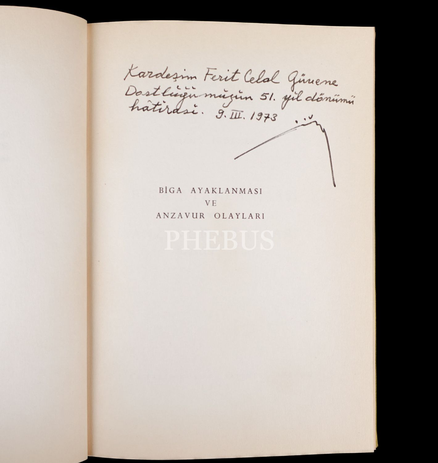 "Kardeşim Ferit Celal Güvene dostluğumuzun 51. yıl dönümü hatırası." ithafıyla, 9 Mart 1973 tarihinde imzalanmıştır.