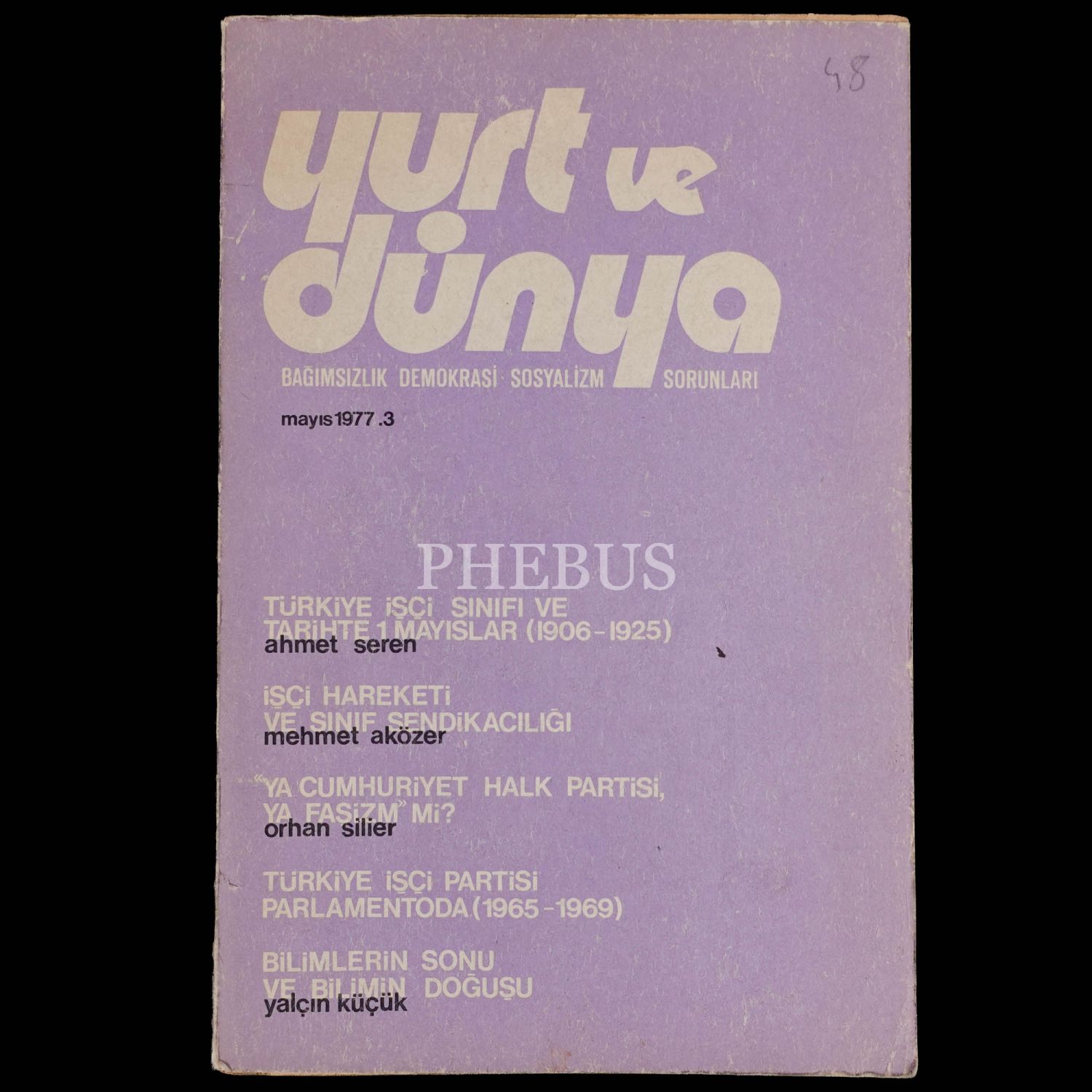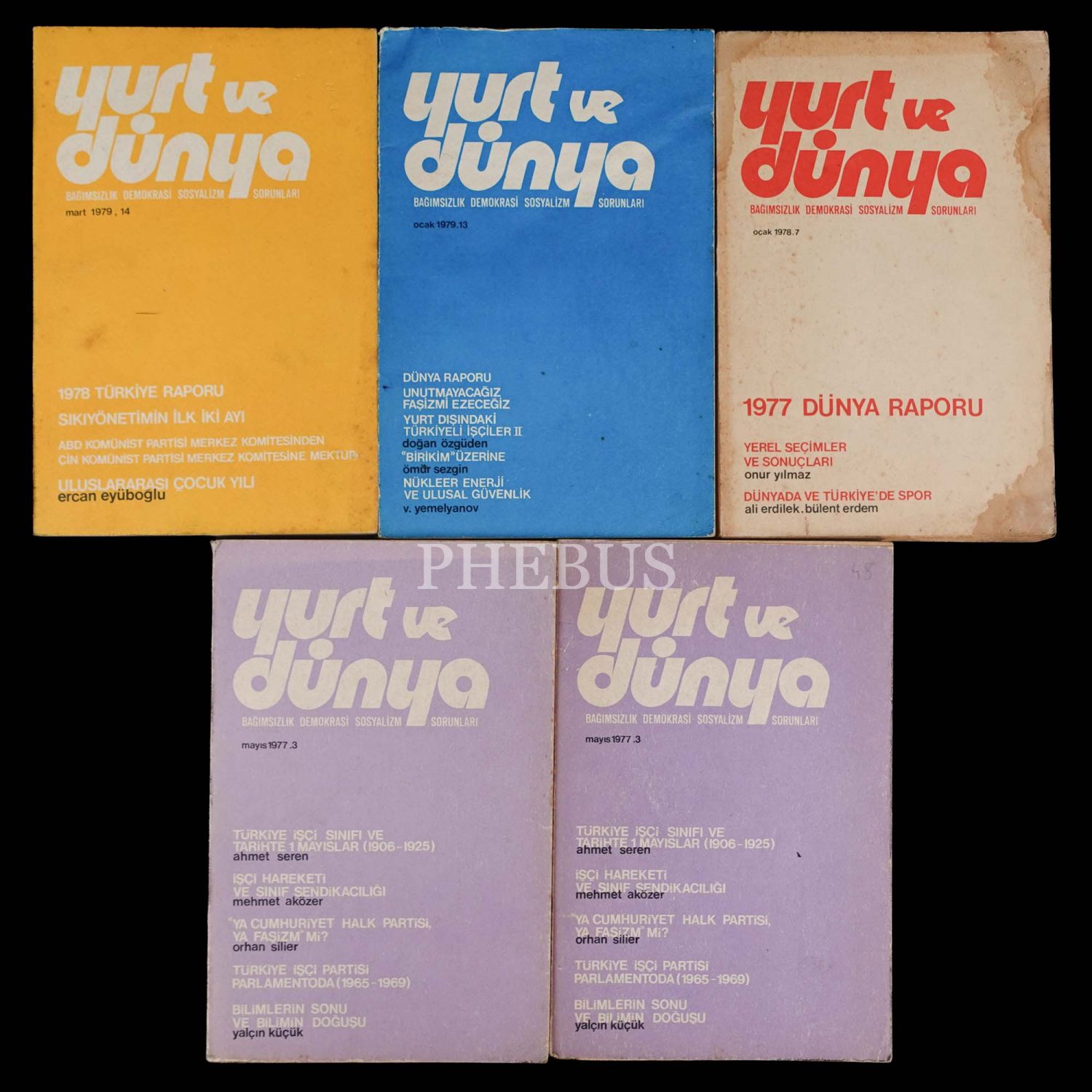 YURT VE DÜNYA dergisinin Mayıs 1977 ila Mart 1970 tarihleri arasında yayımlanan 3. 7, 13 ve 14. sayıları...