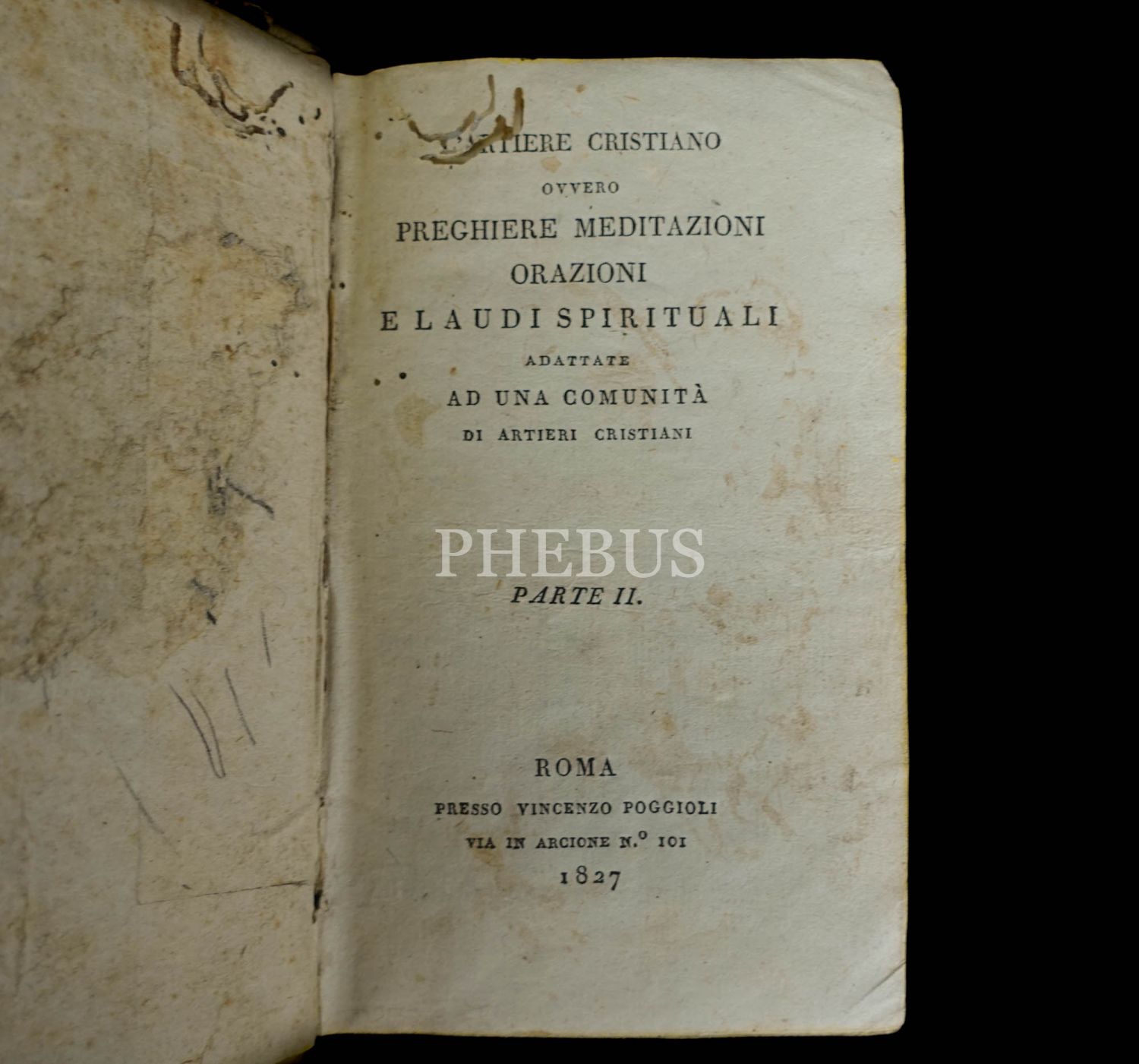L´ARTIERE CRISTIANO, OVVERO PREGHIERE, MEDITAZIONI, ORAZIONI E LAUDI SPIRITUALI ADATTATE AD UNA COMUNITÀ DI ARTIERI CRISTIANI, Giuseppe Marchi, 1827, Presso Vinceno Poggioli (Roma), 354 sayfa, 10x17 cm...