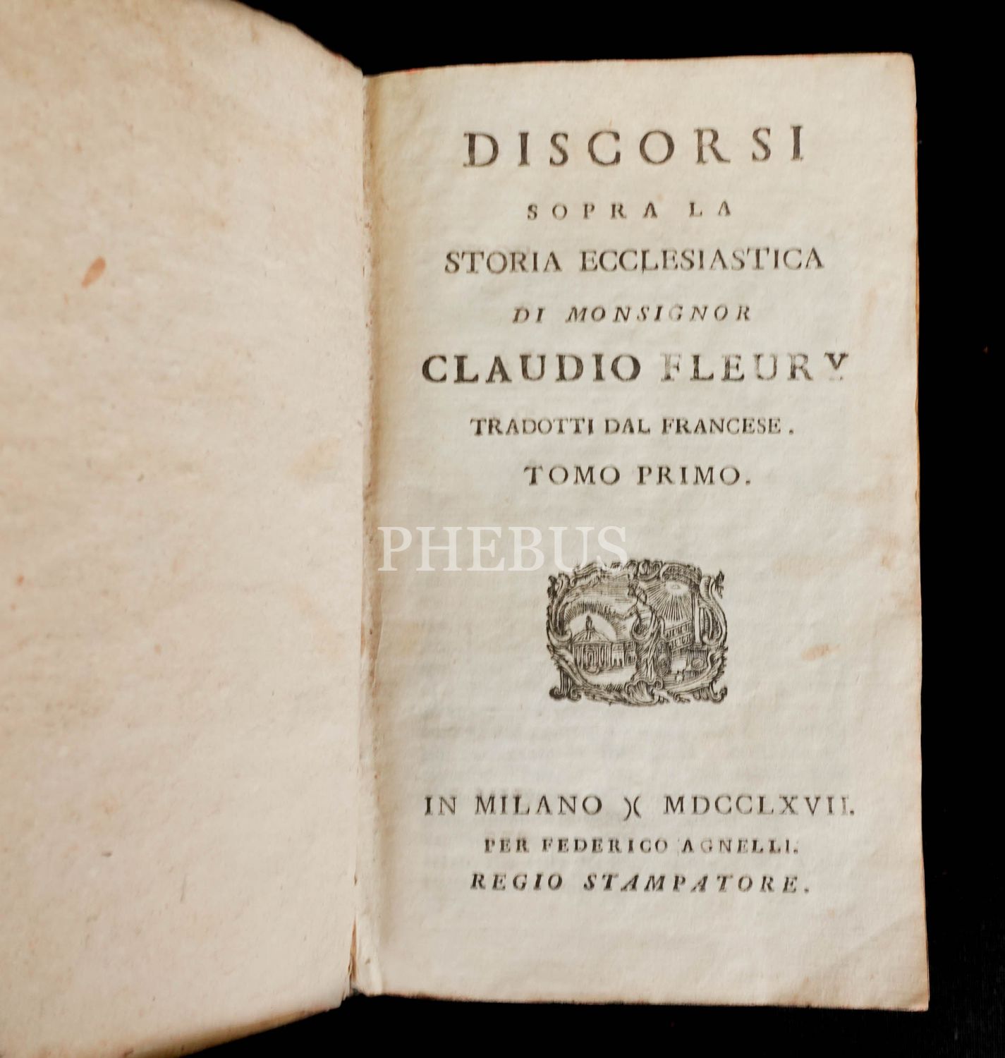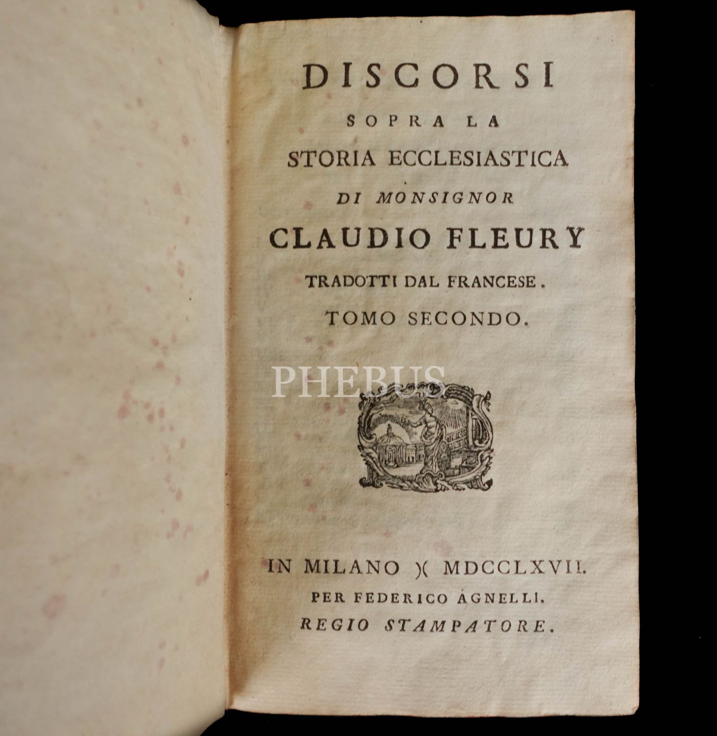 DISCORSI SOPRA LA STORIA ECCLESIASTICA (1 ve 2. Cilt), Fleury Claudio, 1767, Per Federico Agnelli (Milano), 11x19 cm...