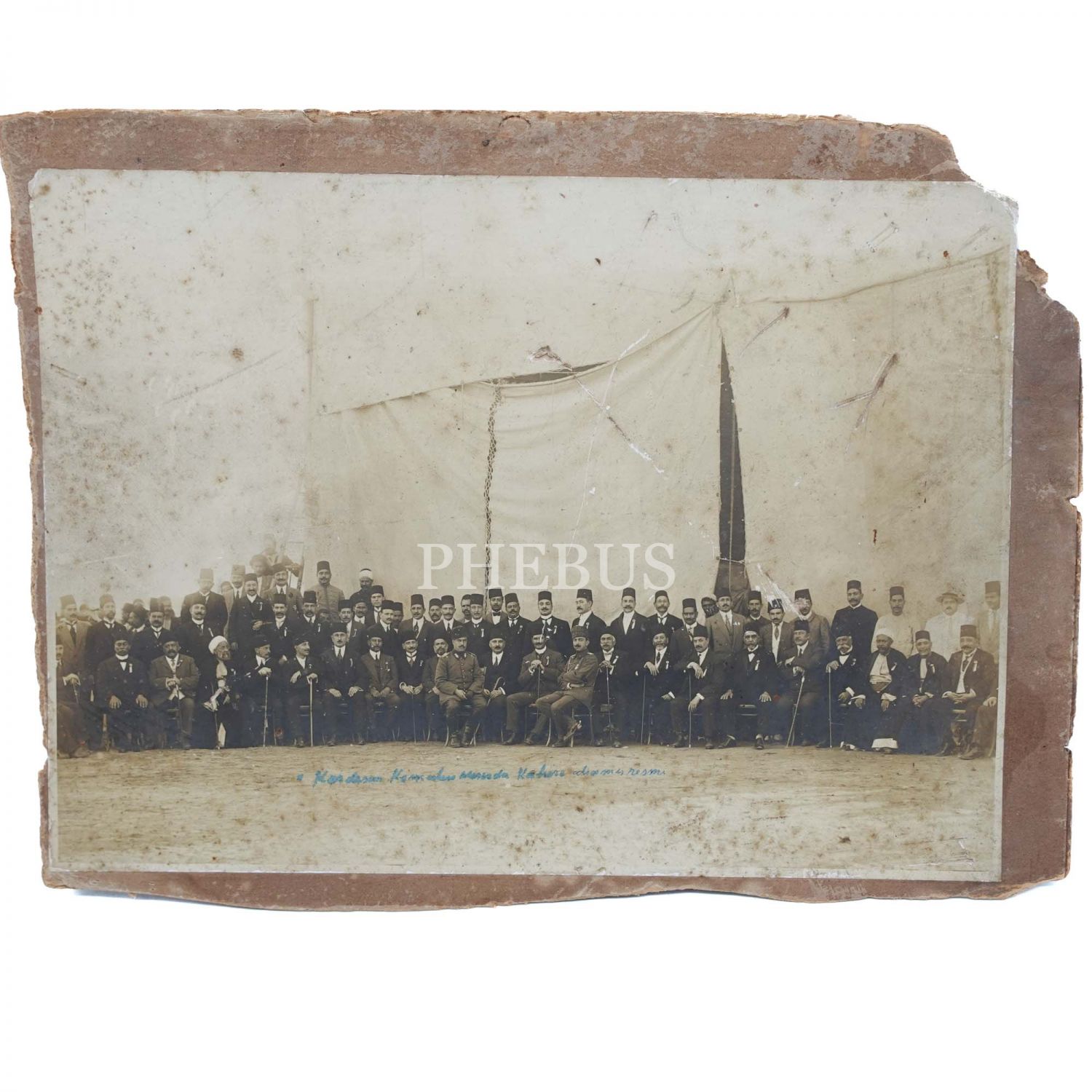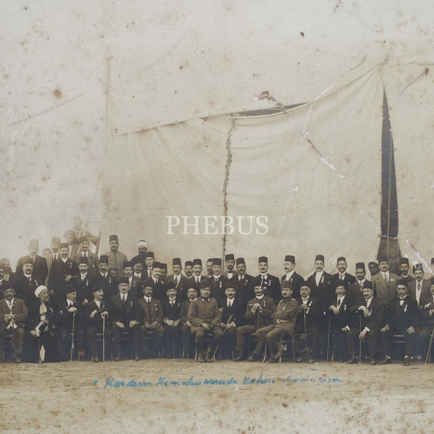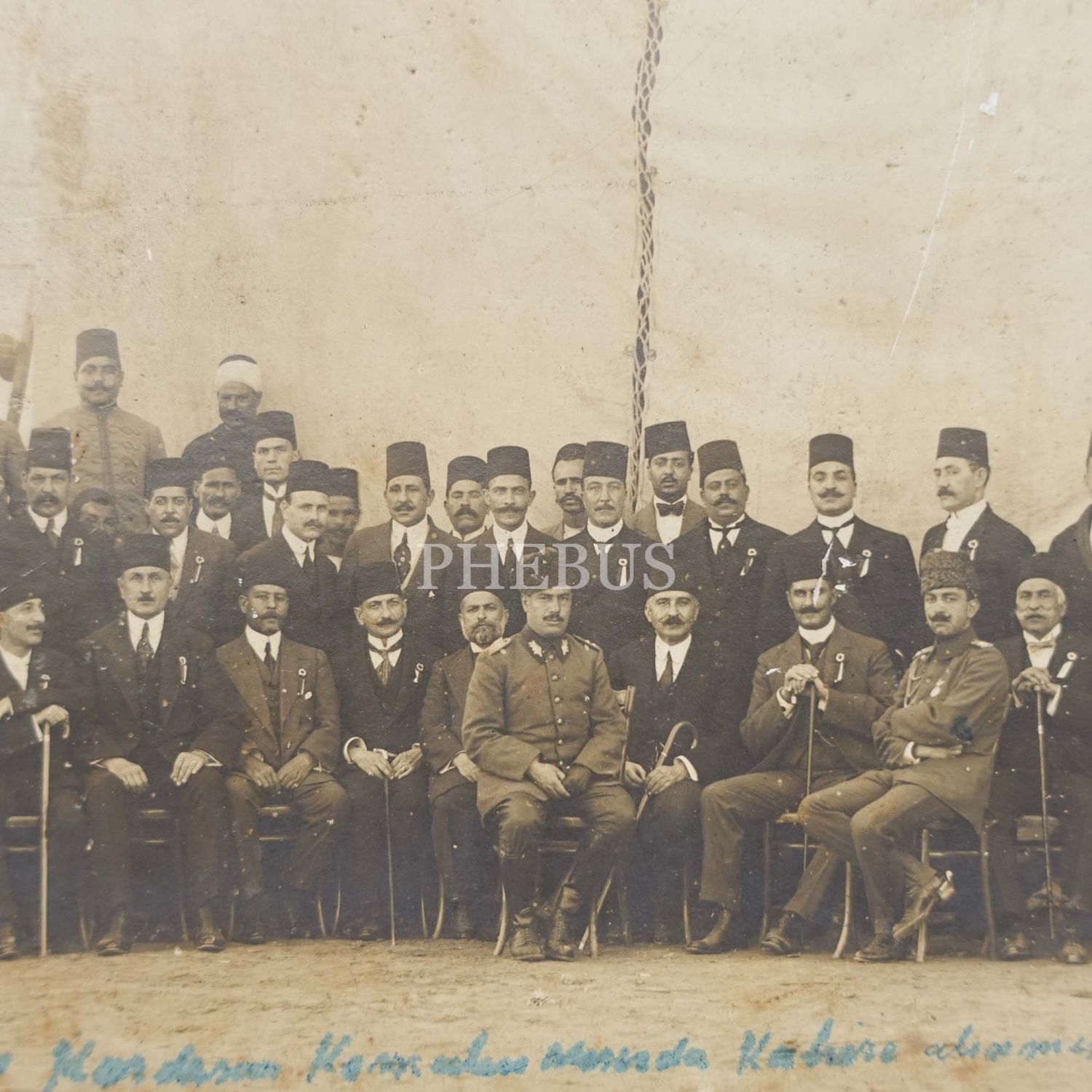 İstanbul´dan Kahire´ye gerçekleştirdikleri tarihi uçuş sonrasında, şereflerine verilen yemekte Yüzbaşı Kemal ve Salim Bey´in hatıra fotoğrafı, 31x23 cm...