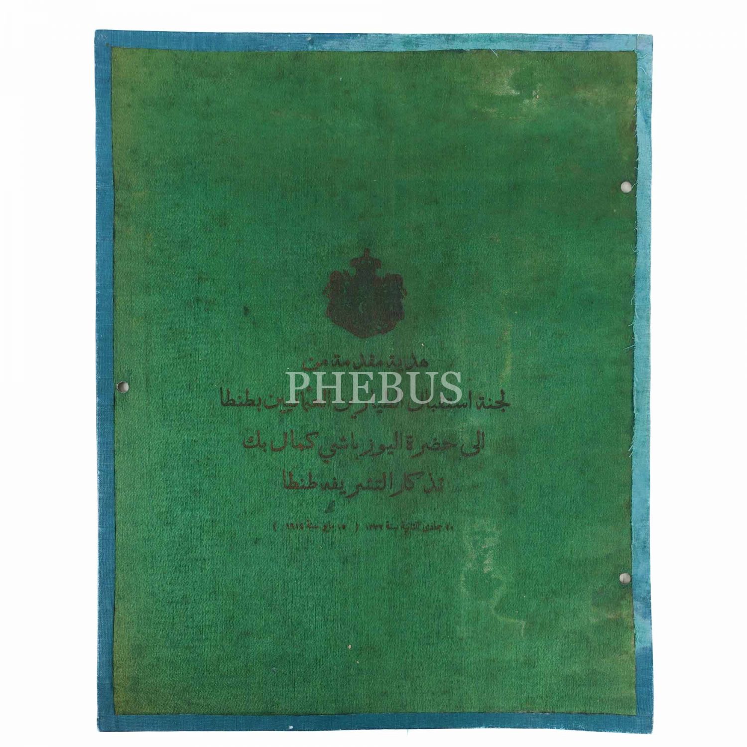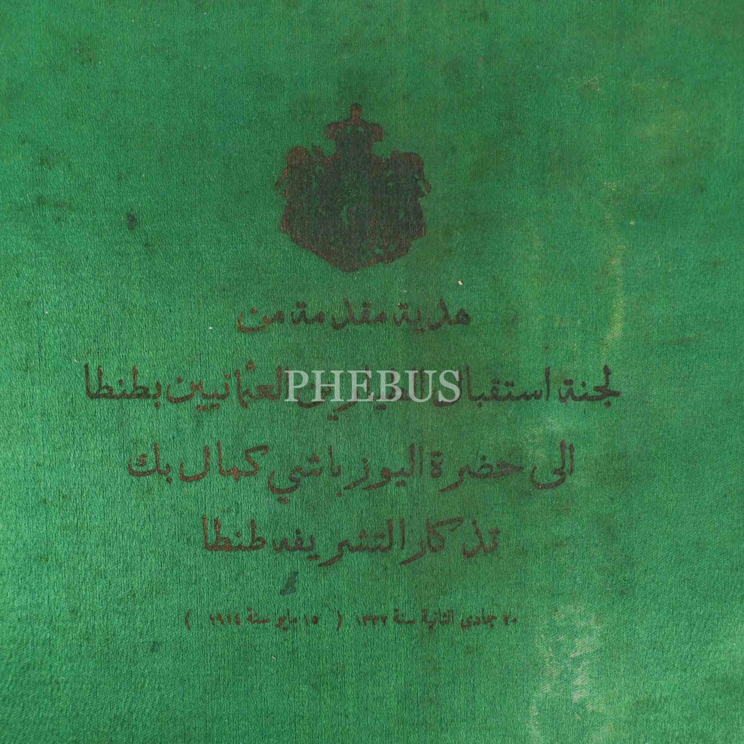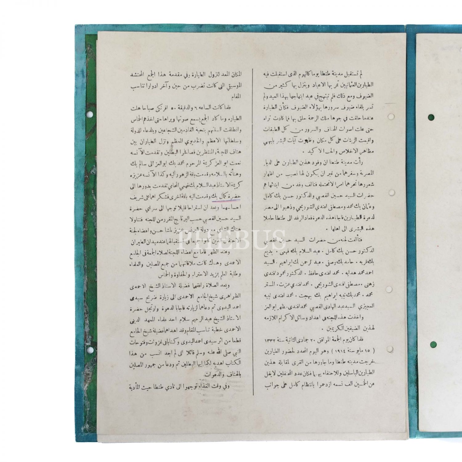 İstanbul´dan Kahire´ye gerçekleştirdikleri tarihi uçuş sonrasında, şereflerine verilen yemekte Yüzbaşı Kemal Bey´e takdim edilen Arapça metin, 5 sayfa, 27x34 cm...
