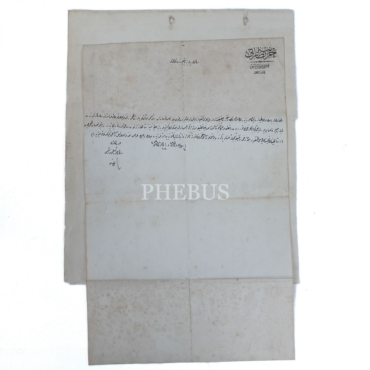 Türk havacılık tarihinin en önemli figürlerinden biri olan Yüzbaşı Kemal Bey’in, Balkan Harbi´nde gerçekleştirdiği keşif uçuşlarında sağladığı yararlılıklardan dolayı, Padişah tarafından ihsan edilen, elmasla süslenmiş altın kordonlu saati kendisine takdim eden Başkumandan Vekili Enver Paşa´nın imzaladığı takdir beratı, 1329, 22x34 cm...