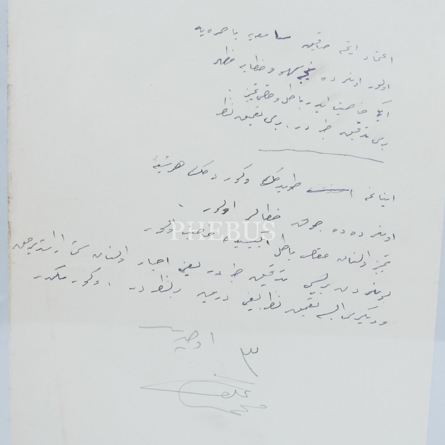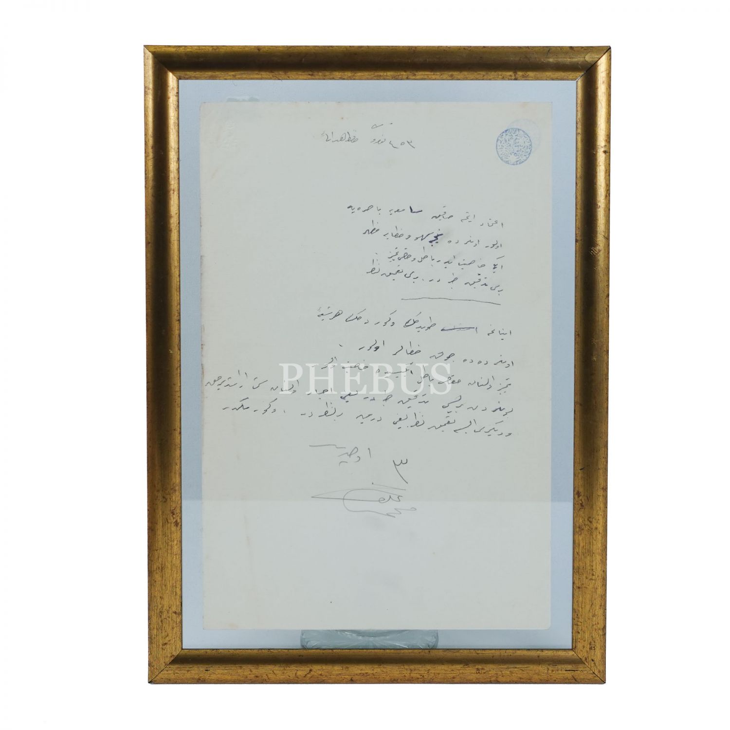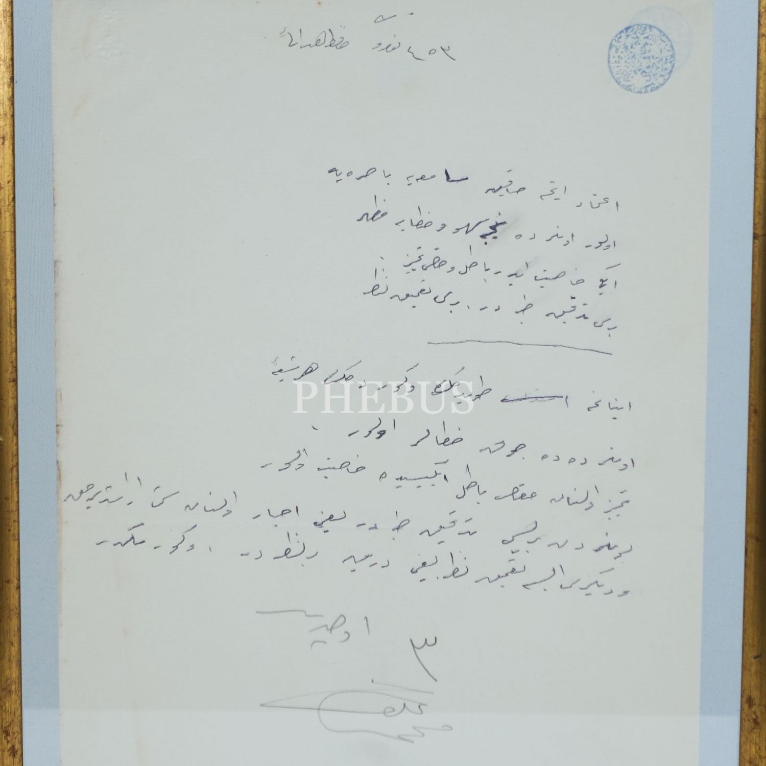 Mehmed Akif Ersoy´un Dârülfünûn Edebiyat Öğretmenliği görevindeyken değerlendirdiği ve imzaladığı sınav kağıdı, çerçevesinde, 30x42 cm...