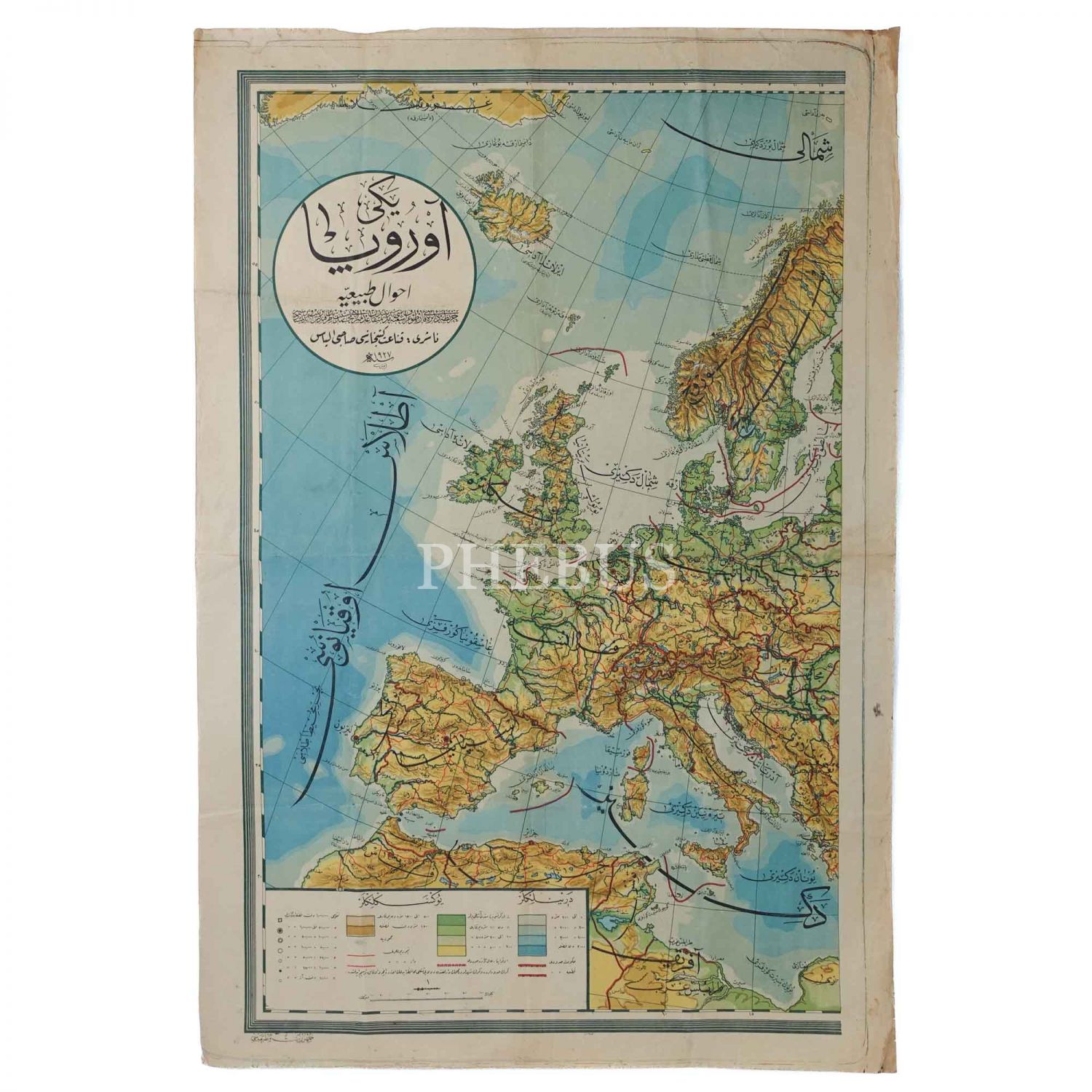 Harita Dairesi Kartografi Şubesi Müdürüriyeti´nden mütekaid (emekli) Miralay Muhammed Neşet Bey tarafından hazırlanan "Yeni Avrupa" haritası, 1927, Cumhuriyet Matbaası, 100x68 cm...
