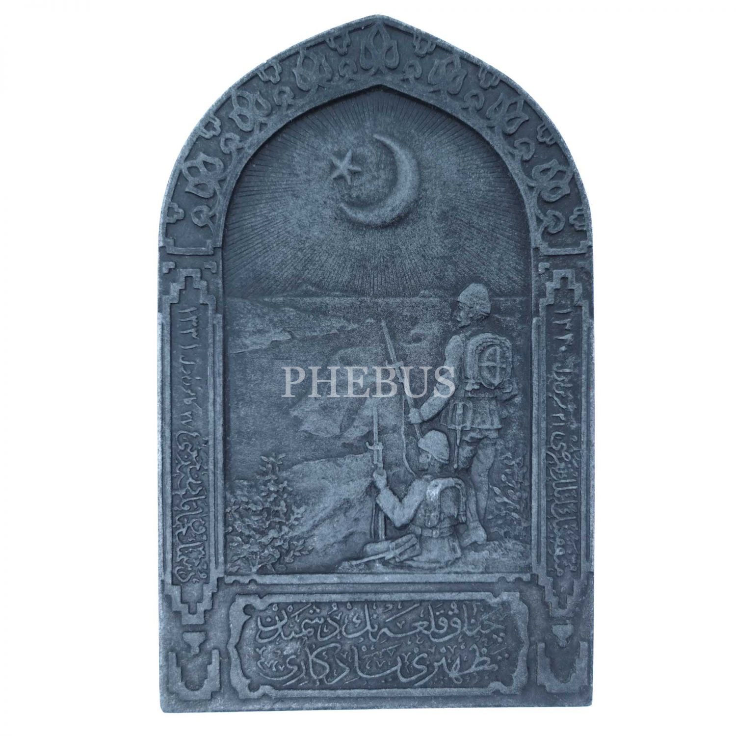 Plaketin Enver Paşa´nın portresine ayırılan yüzeyinde "Başkumandan Vekili Harbiye Nazırı Enver Paşa" yazılıdır. Diğer yüzünün sağ köşesinde, "Müttefikeynin ilk taarruzu 21 Teşrinievvel 1330", sol köşesinde "Düşmanın Çanakkale´den ricaatı 27 Kanunievvel 1331" ve ortasında "Çanakkale´nin düşmandan tedhiri yadigarı" yazılıdır.