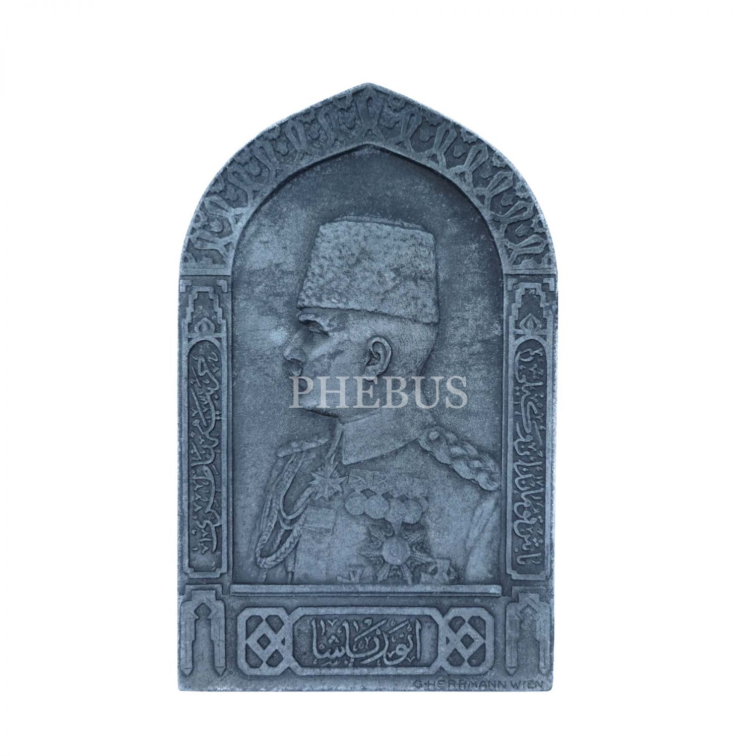 Çanakkale´nin düşmandan temizlenmesi anısına hazırlanan, bir yüzünde Enver Paşa´nın sol cepheden portresi, bir diğer yüzünde Çanakkale Boğazı´na bakan Türk askerlerinin işlendiği metal plaket, 4x7 cm...