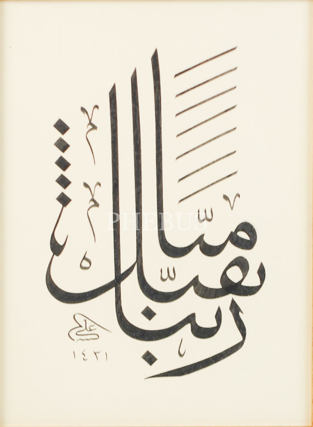 Ali Hüsrevoğlu ketebeli celi sülüs yazı, 1431 tarihli, çerçeve ölçü: 52x45 cm...