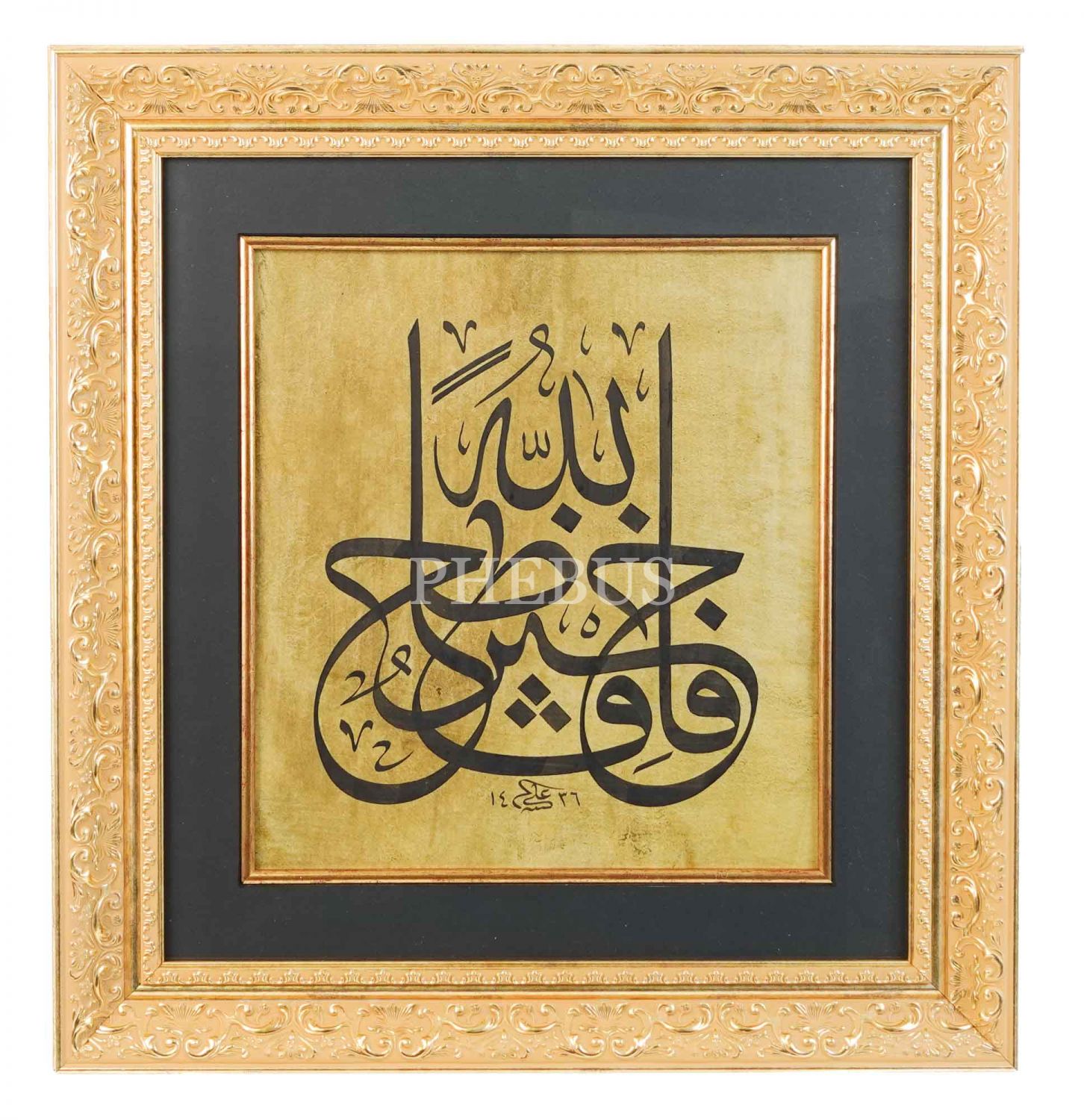 Ali Hüsrevoğlu ketebeli celi sülüs yazı, 1436 tarihli, çerçeve ölçü: 59x55 cm...
