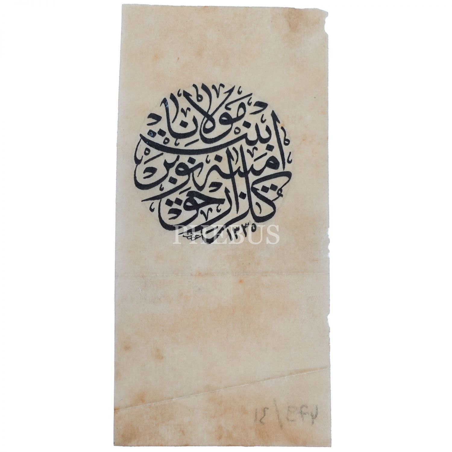 Arif ketebeli (Muhtemelen Arif Hikmet Bey) sülüs isim istifi, "Gülzar-ı Hak Emine Nevber binti Mevlana", 1335 tarihli, 13x6 cm...