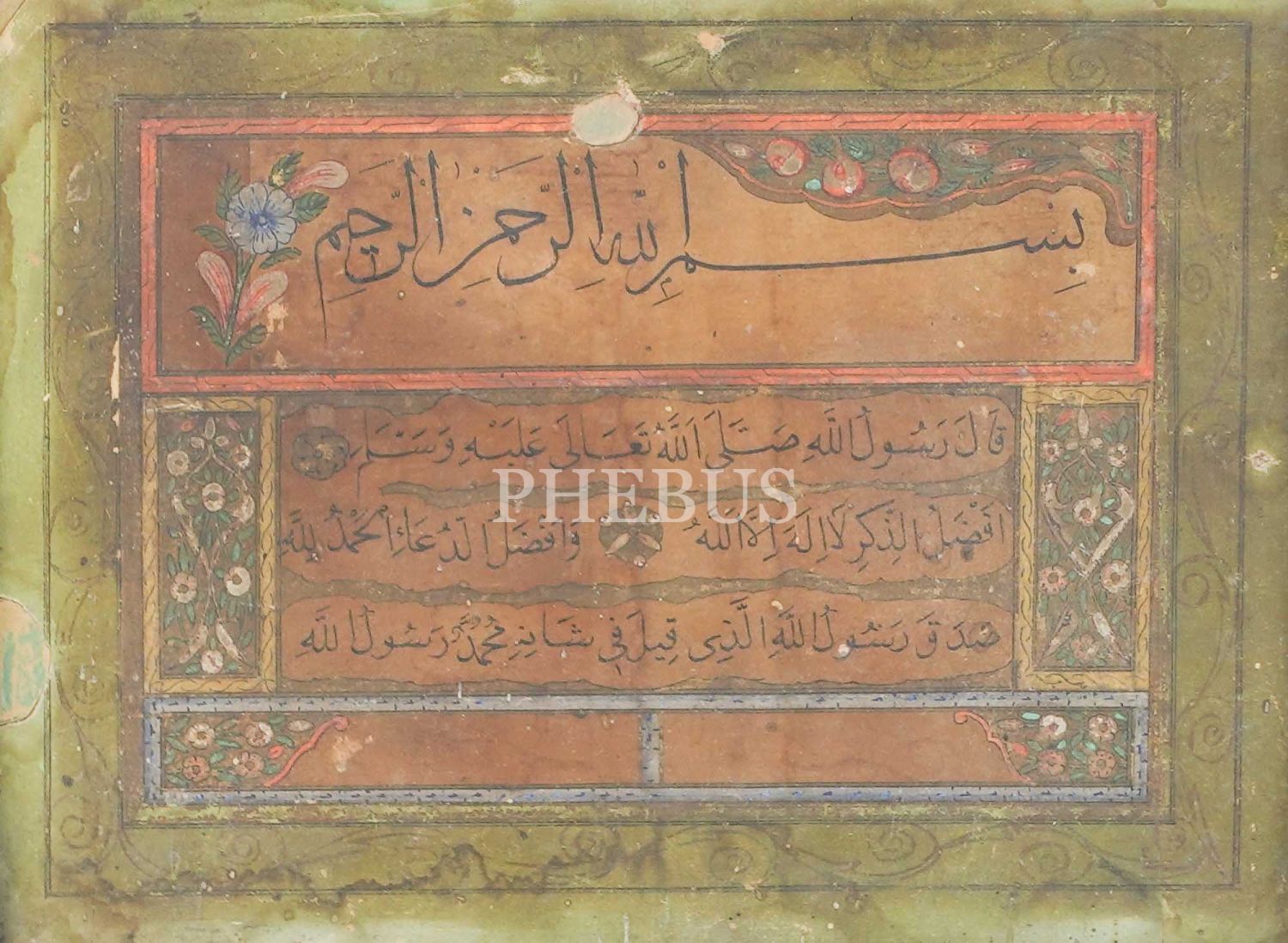 Sülüs kısım: Besmele. Nesih kısım: "En hayırlı zikir Lailaheillallah´tır. En hayırlı dua Elhamdülillah´tır." hadis-i şerifi.