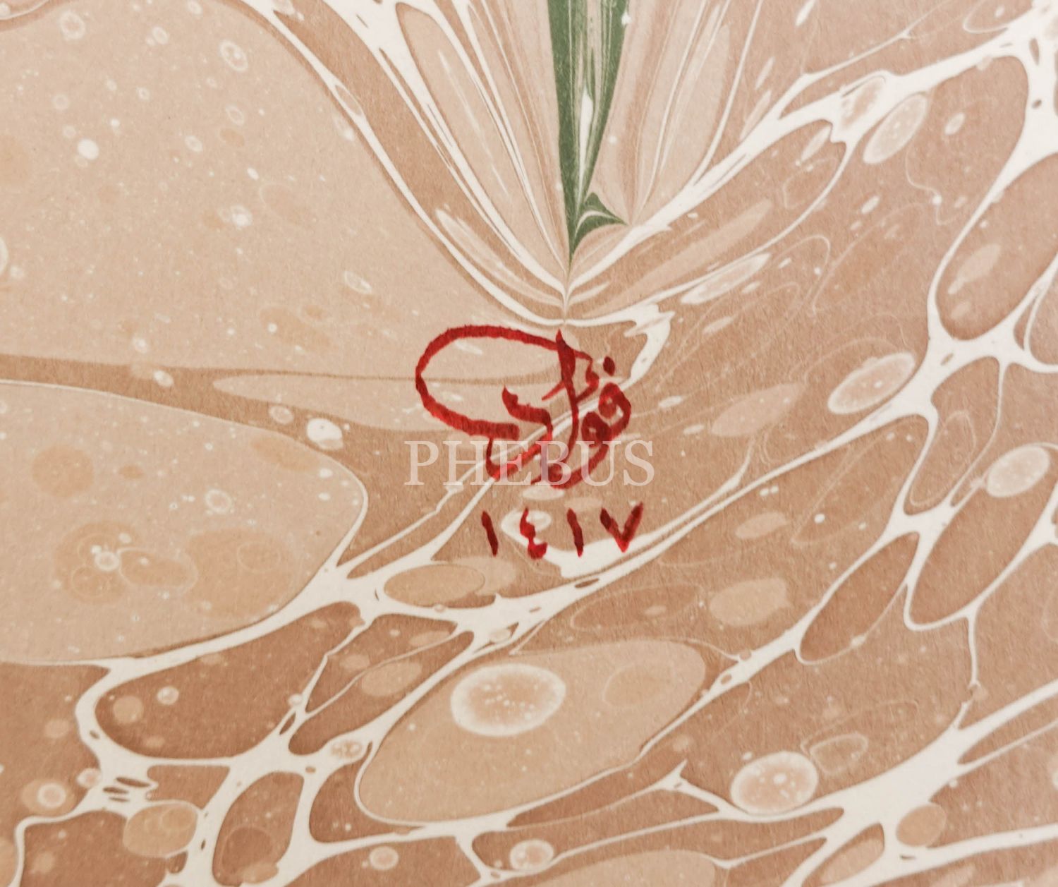 Fuat Başar Osmanlıca imzalı papatya ebrusu, 1417 tarihli, 49x35 cm...
