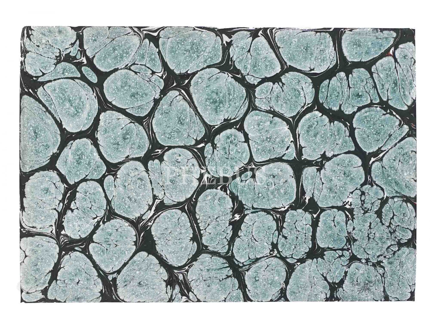 Fuat Başar imzalı ebru, 1999 tarihli, 49x35 cm...